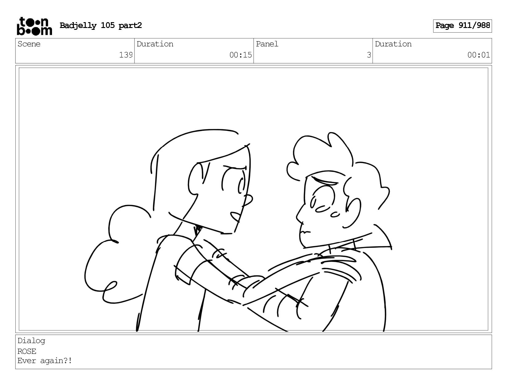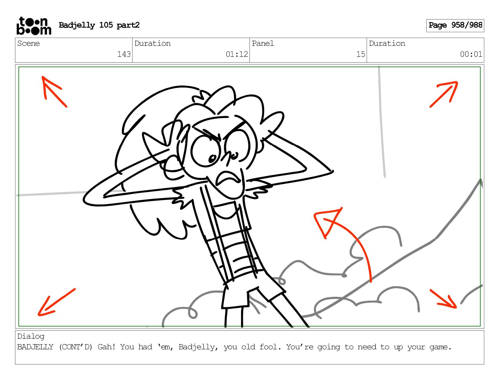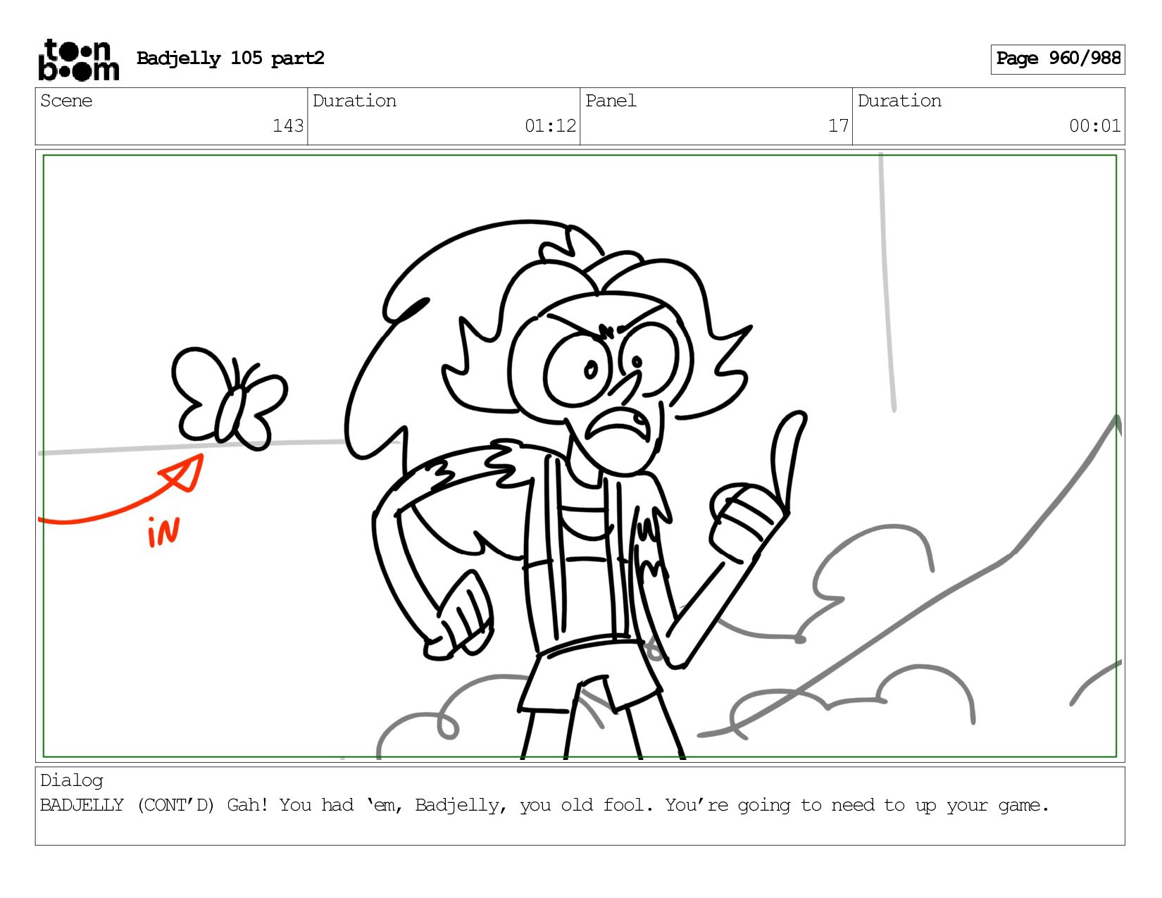 Scene 143 Duration 01:12 Panel 15 Duration 00:01 Dialog BADJELLY