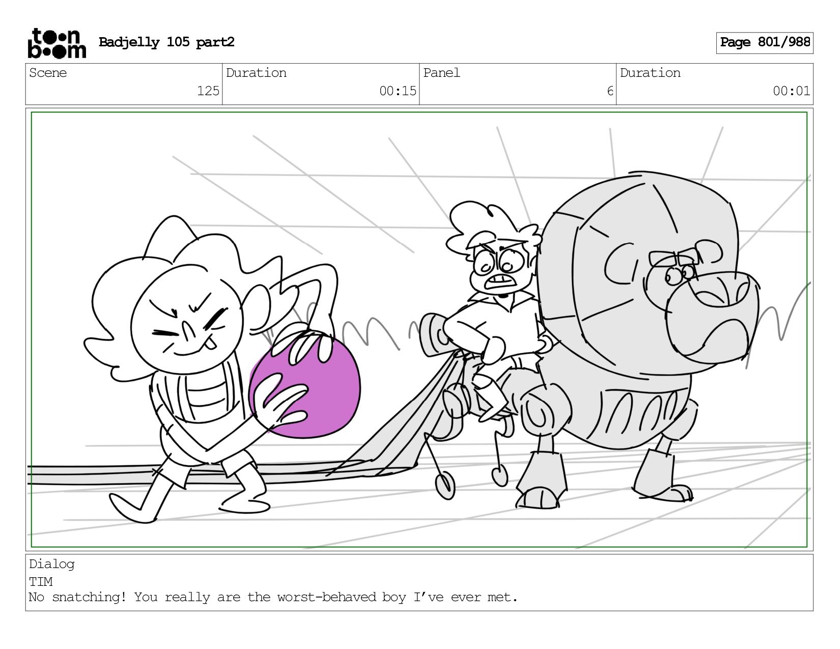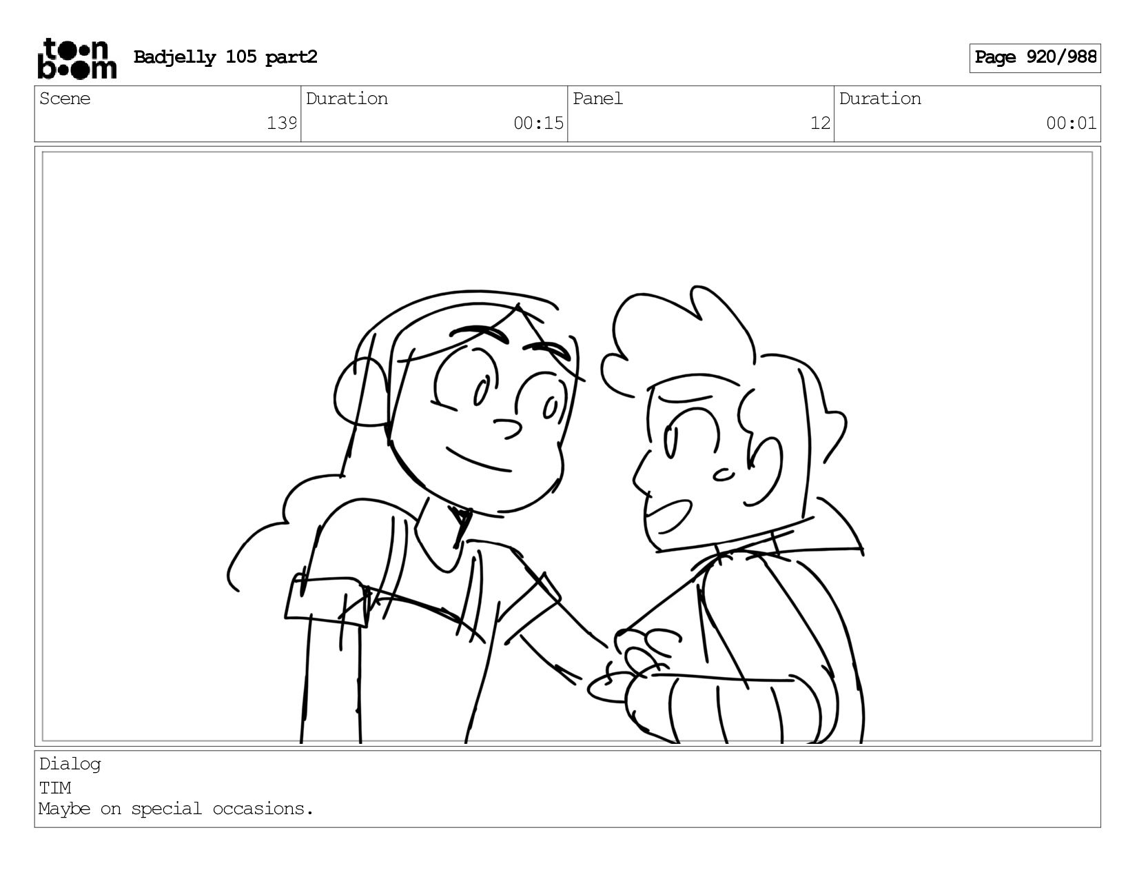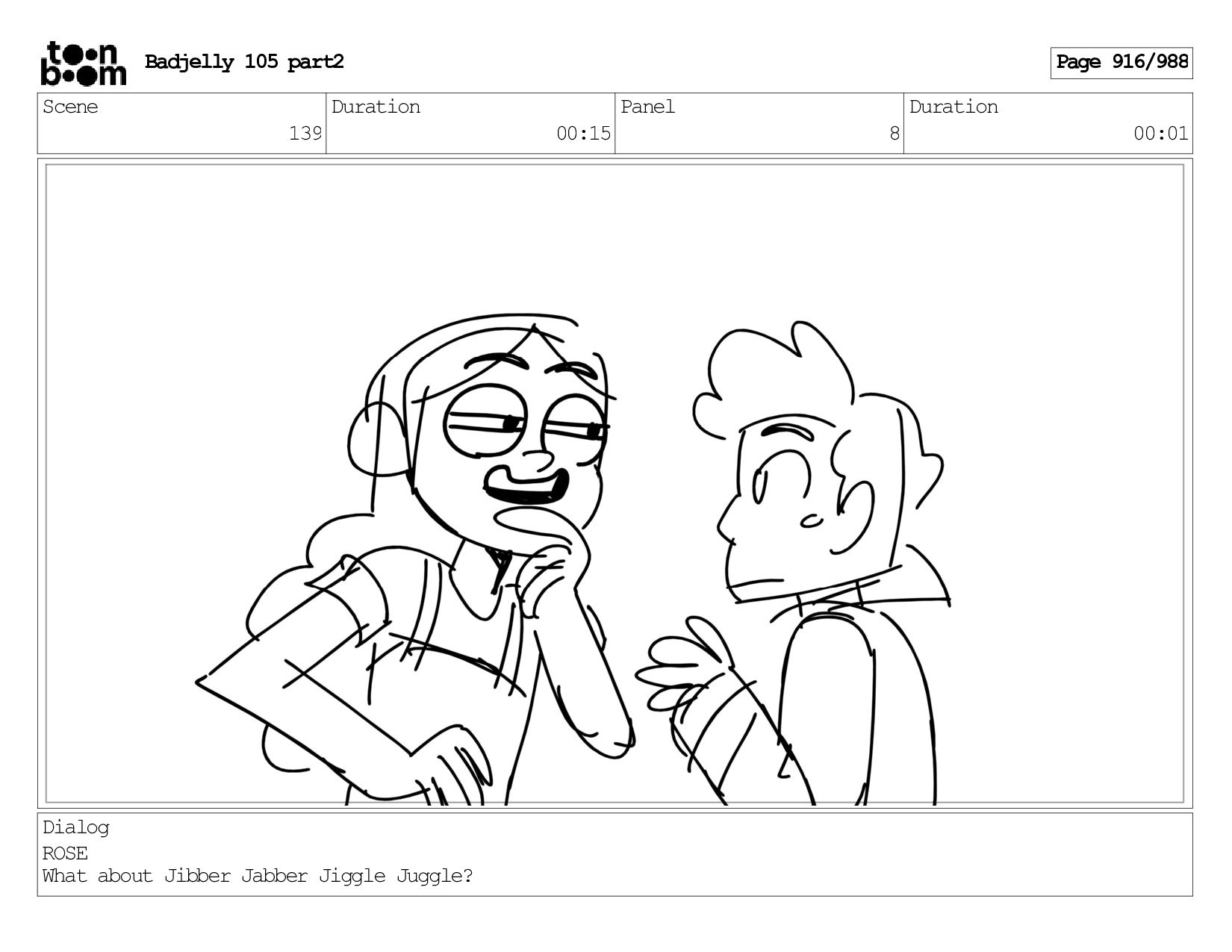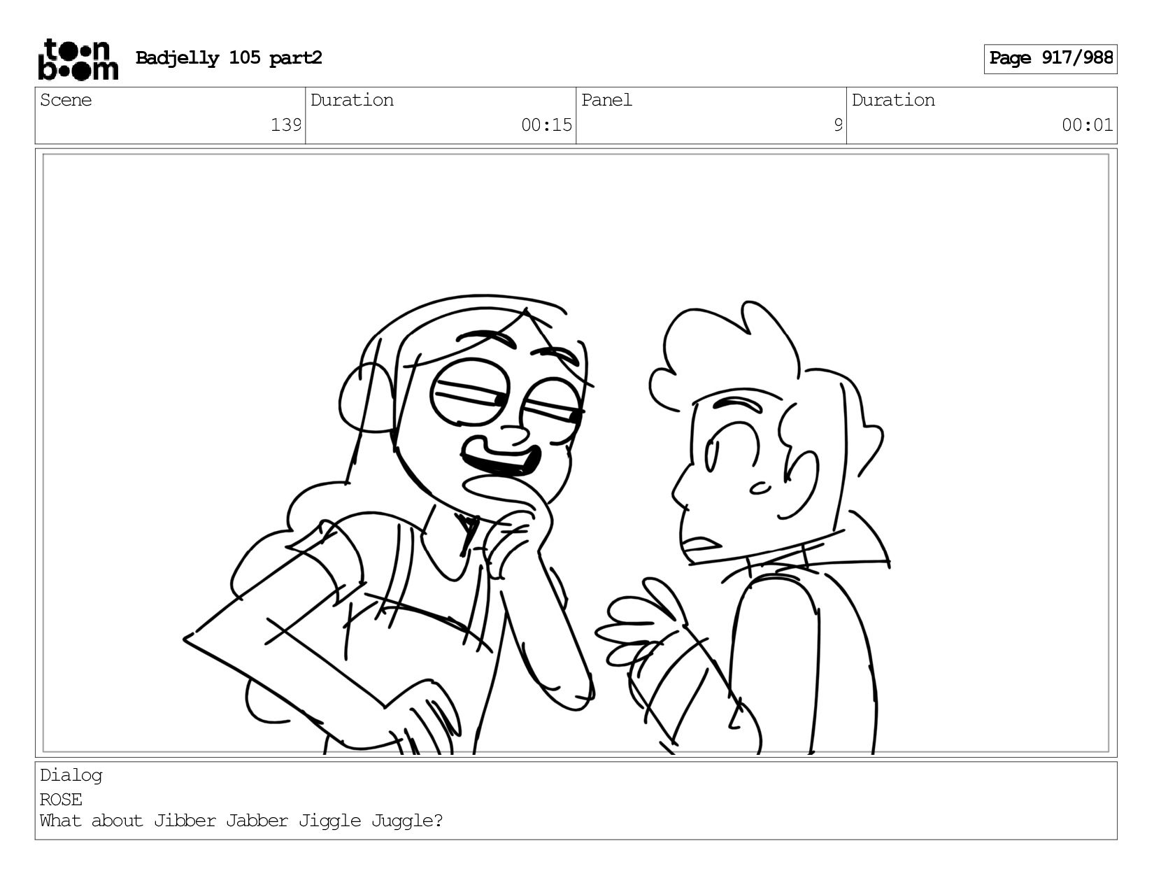 Scene 143 Duration 01:12 Panel 15 Duration 00:01 Dialog BADJELLY