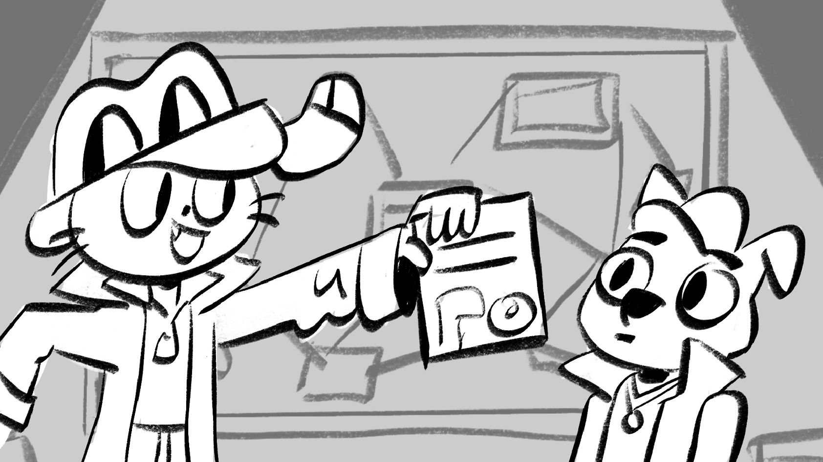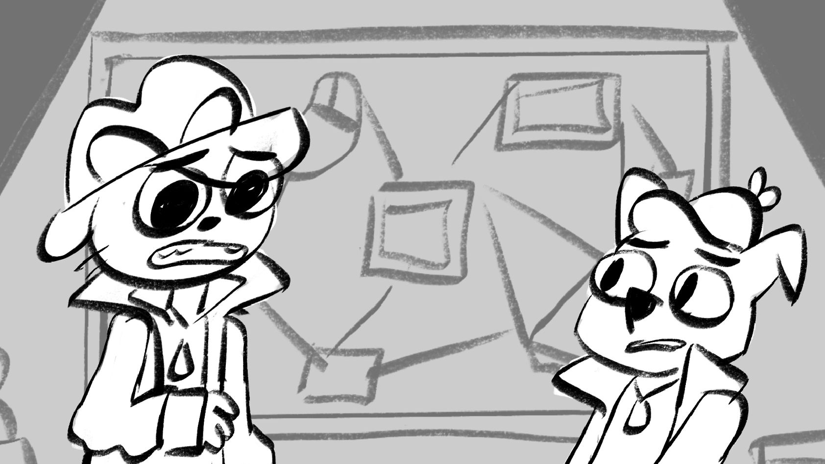 Development boards for Pipi & Poto, a children's show pitch produced by Mukpuddy Animation