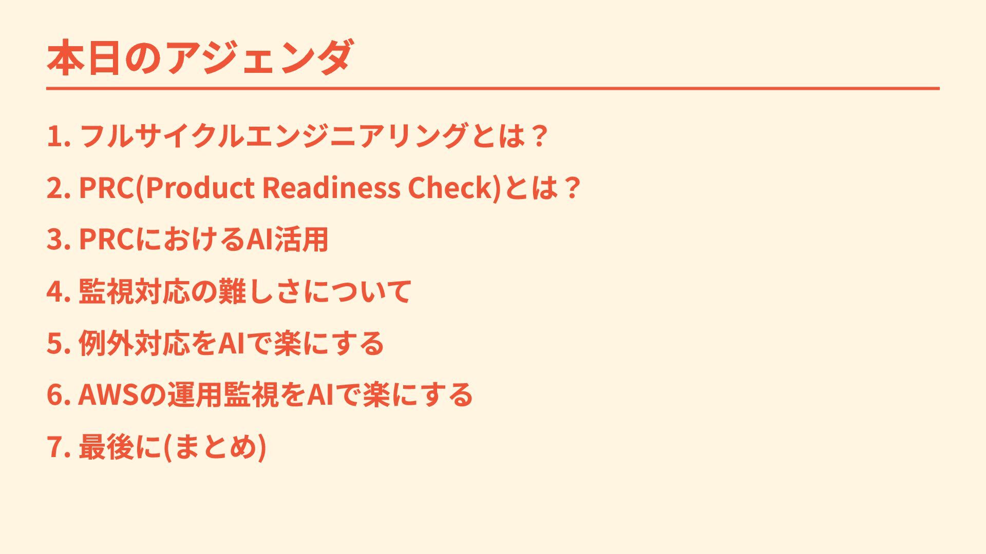 本日のアジェンダ 1. フルサイクルエンジニアリングとは? 2. PRC(Product Readiness Check)とは? 3. PRCにおけるAI活用 4.