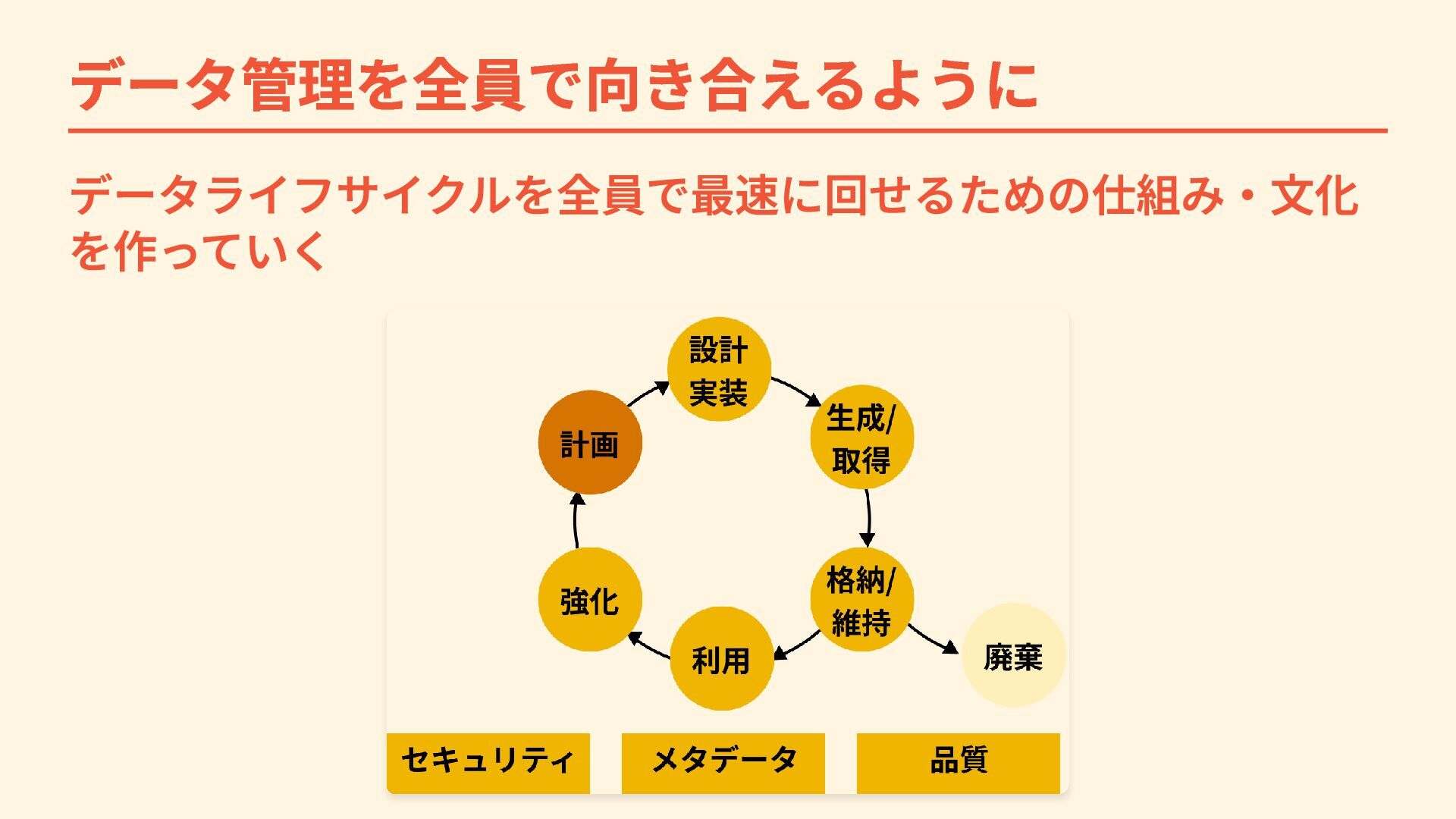 データ管理を全員で向き合えるように データライフサイクルを全員で最速に回せるための仕組み・文化 を作っていく