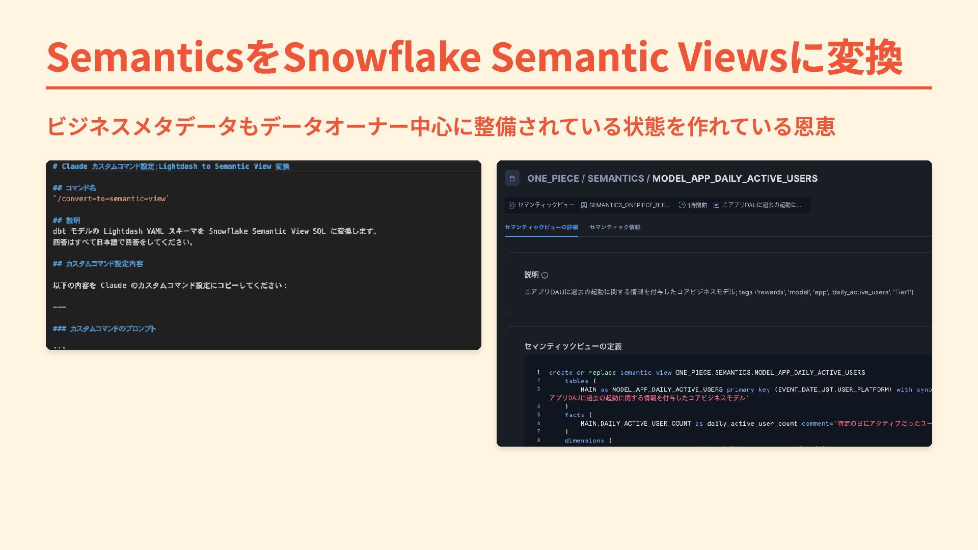 SemanticsをSnowflake Semantic Viewsに変換 ビジネスメタデータもデータオーナー中心に整備されている状態を作れている恩恵