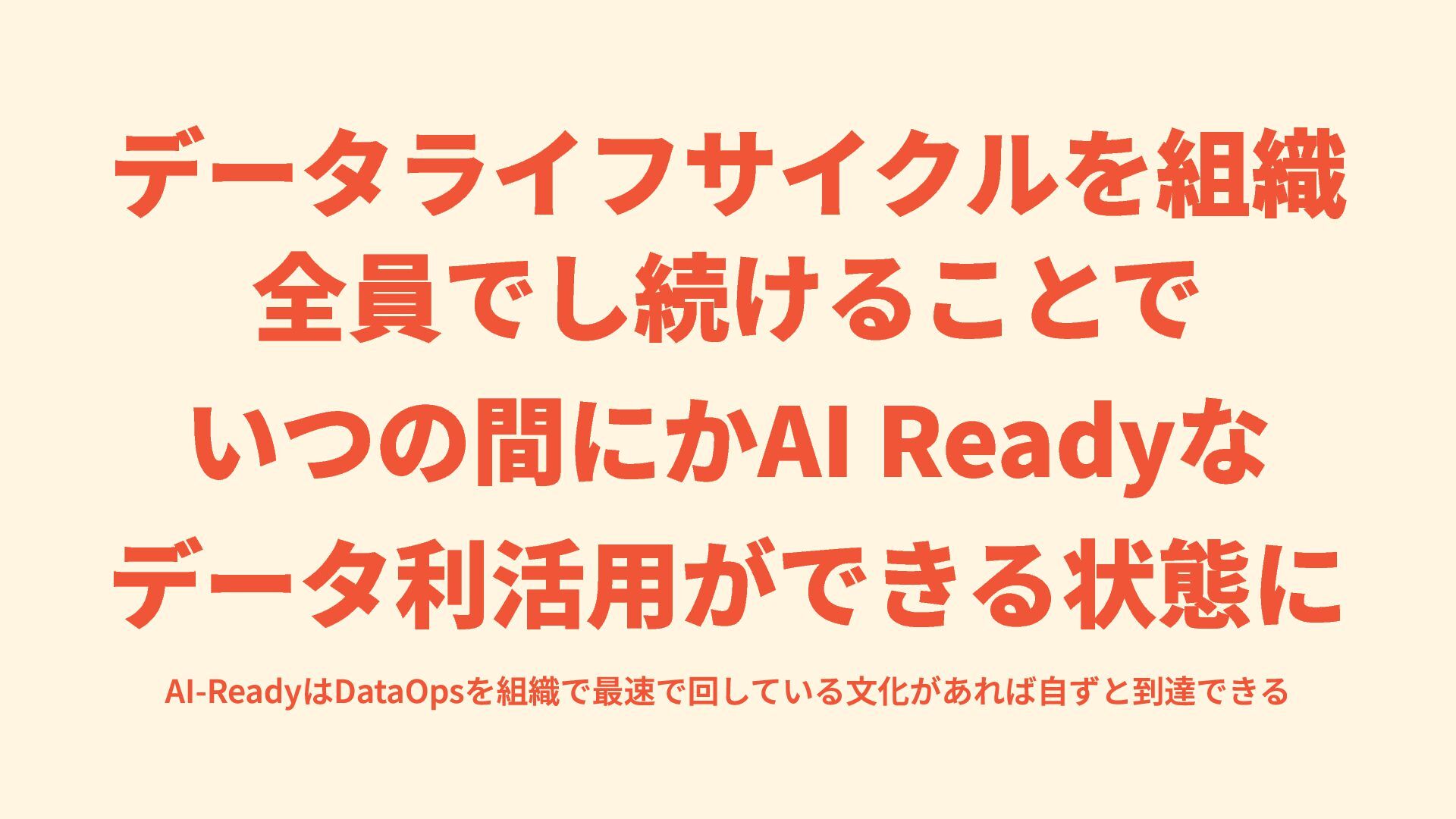 データライフサイクルを組織 全員でし続けることで いつの間にかAI Readyな データ利活用ができる状態に AI-ReadyはDataOpsを組織で最速で回している文化があれば自ずと到達できる