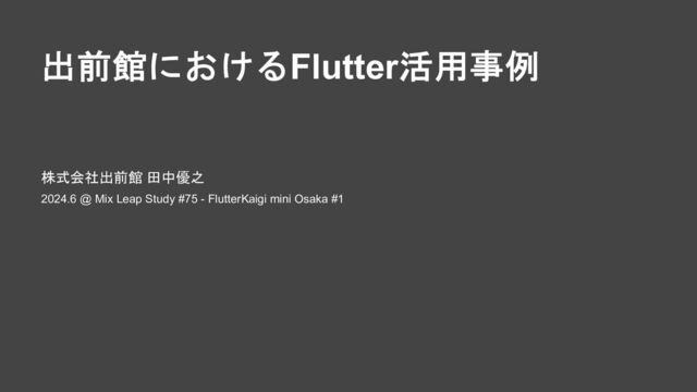 出前館におけるFlutter活用事例 株式会社出前館 田中優之 2024.6 @ Mix Leap Study #75 -