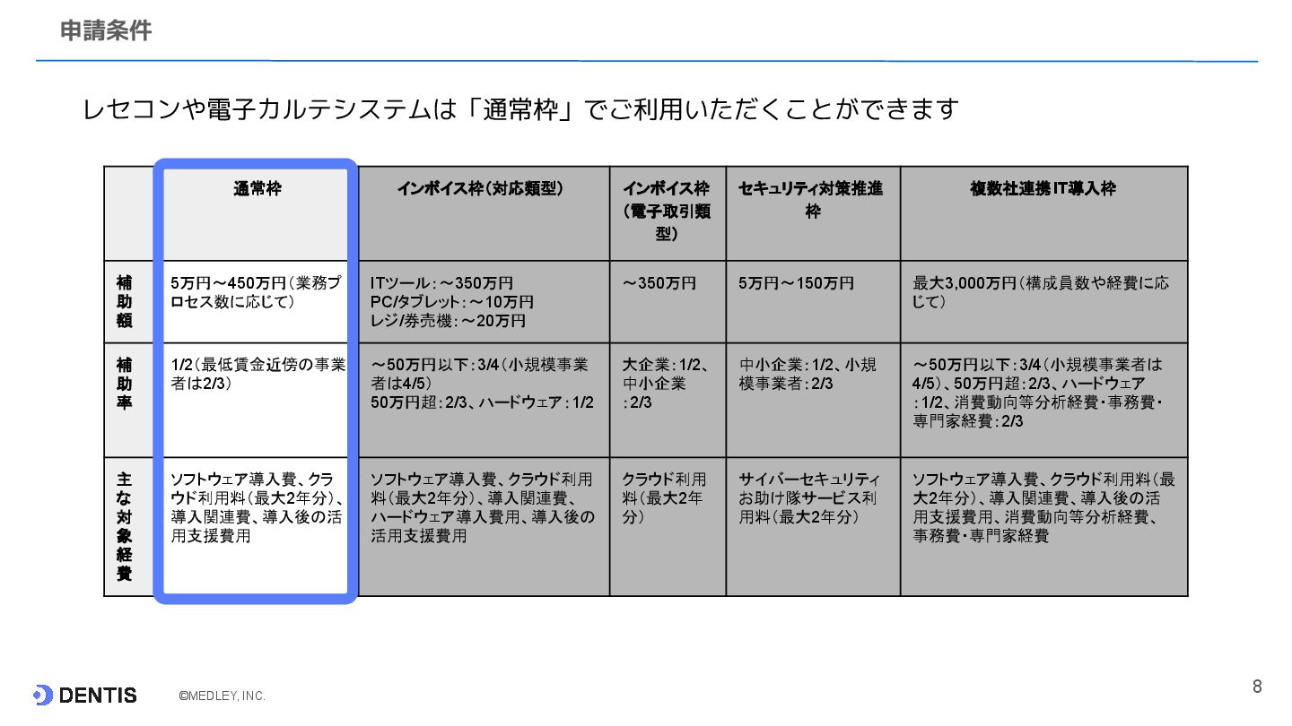 4. 8 ©MEDLEY, INC. 申請条件 通常枠 インボイス枠(対応類型) インボイス枠 (電子取引類 型) セキュリティ対策推進