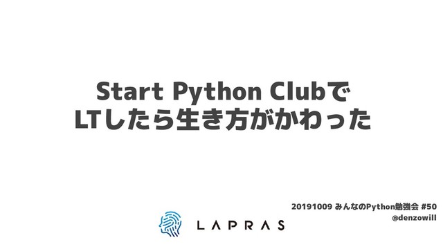 Start Python Clubで LTしたら生き方がかわっ生き方がかわったき方がかわった方がかわったがかわった 20191009 みんなのPython勉強会 #50 @denzowidenzowill
