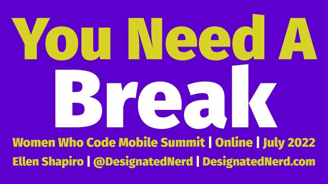 early. → Do not assume the world outside your control will get better at the rate your sanity needs it to → Consider your options for time off, and look carefully at why you're saying no when you do → If you take serious time off, try to really have a hard reset of yourself away from work