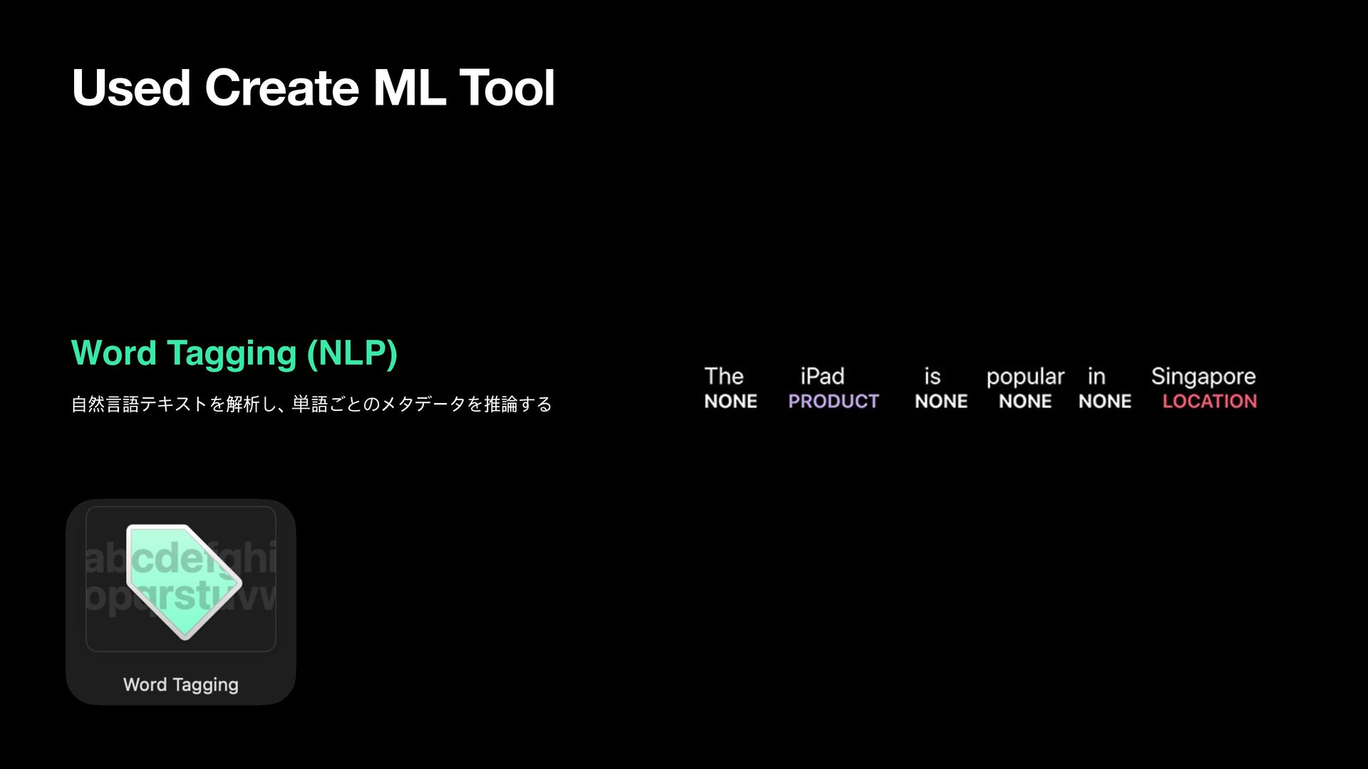 Used Create ML Tool ᥦᜡ᜔ϋβξύΤḑᔡͩf୯᜔ͦͺϦτό ー τΤᱣᆷͫΝ Word Tagging (NLP)