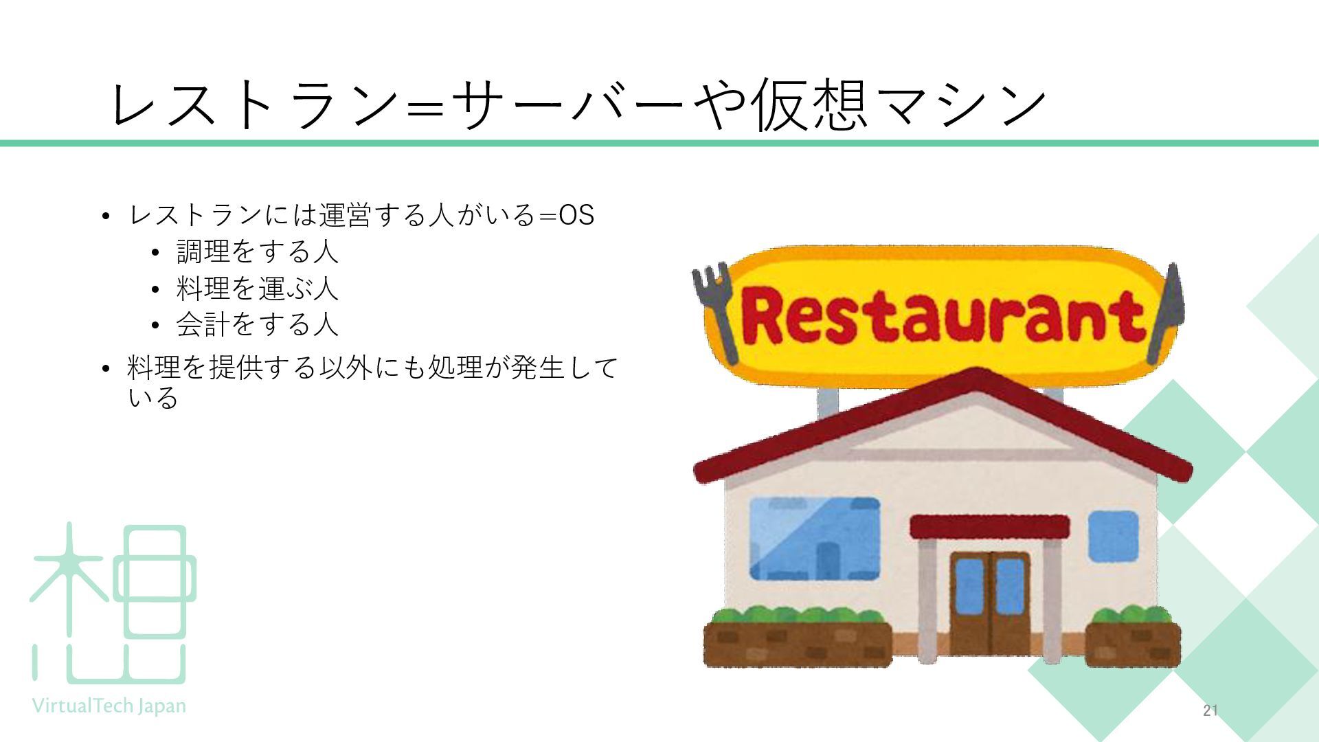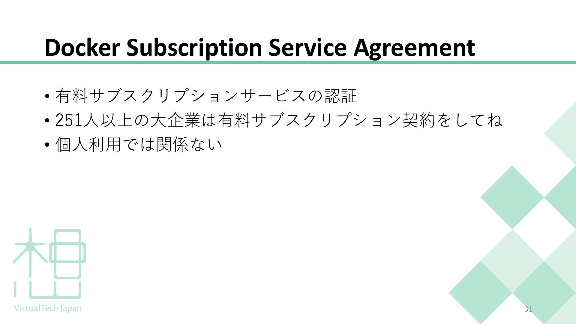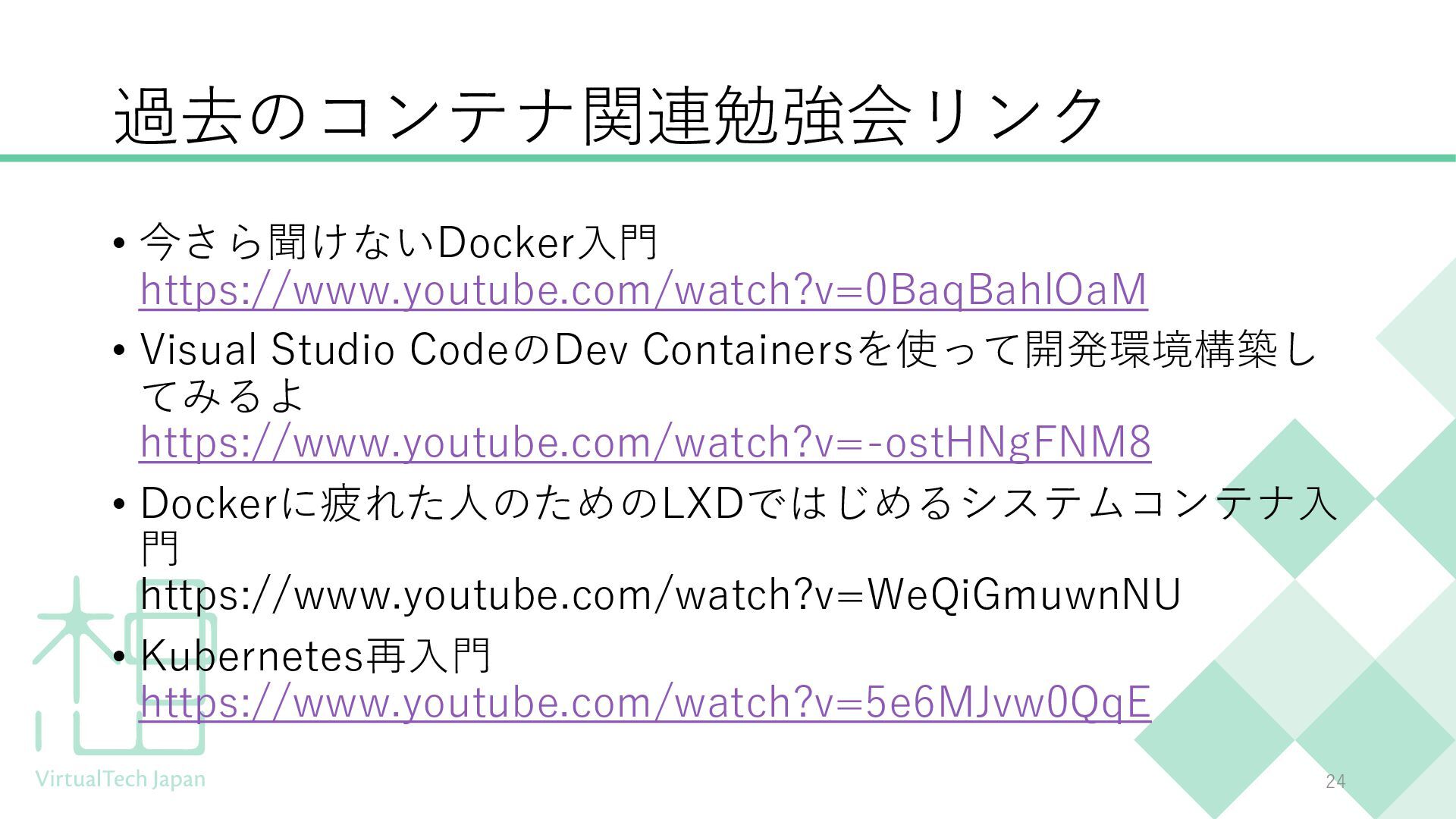 プログラミング未経験の方や、ITにあまり馴染みのない方にもわかりやすい内容となっており、聞くだけでDockerの概要を把握できる構成です。