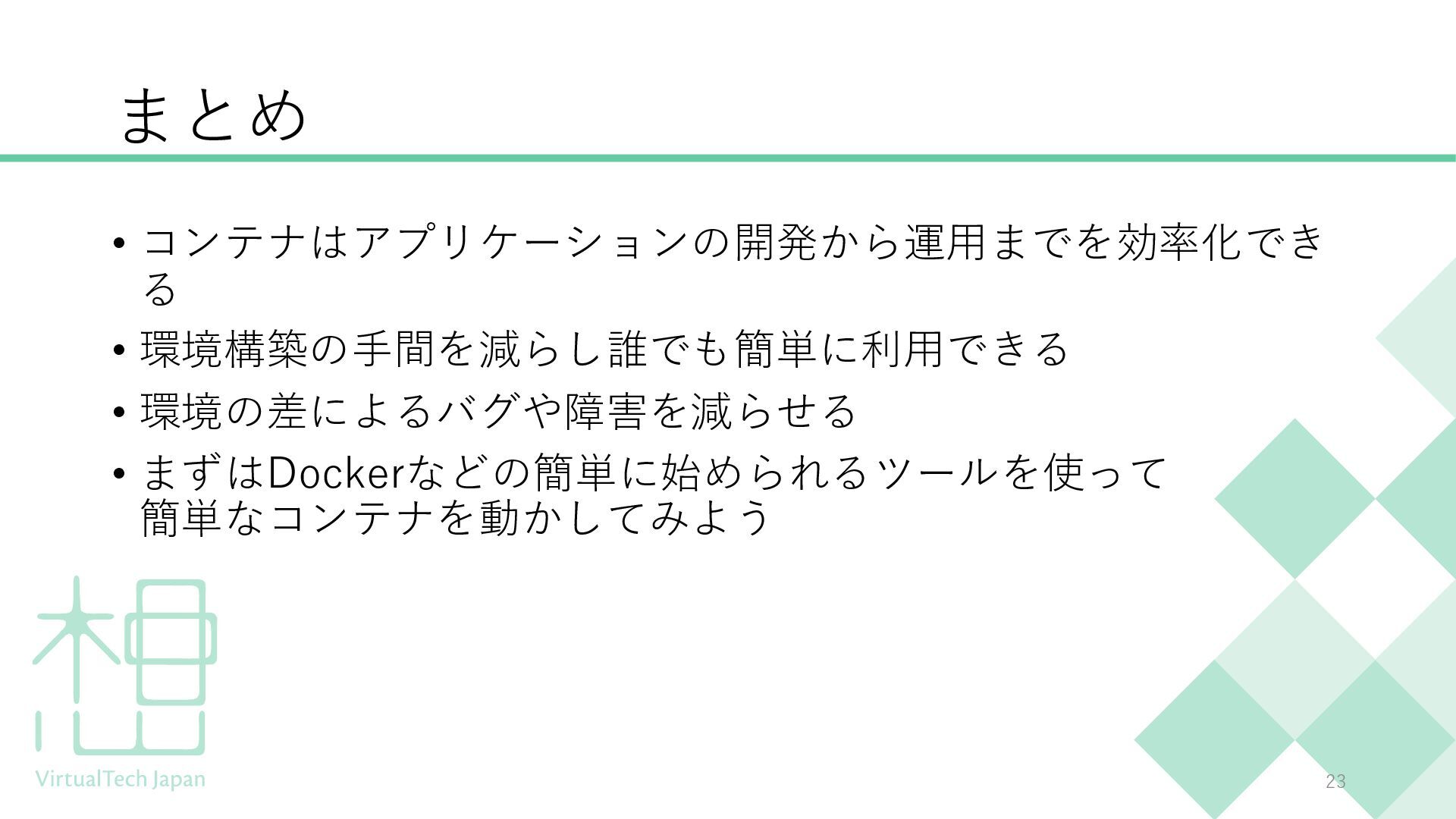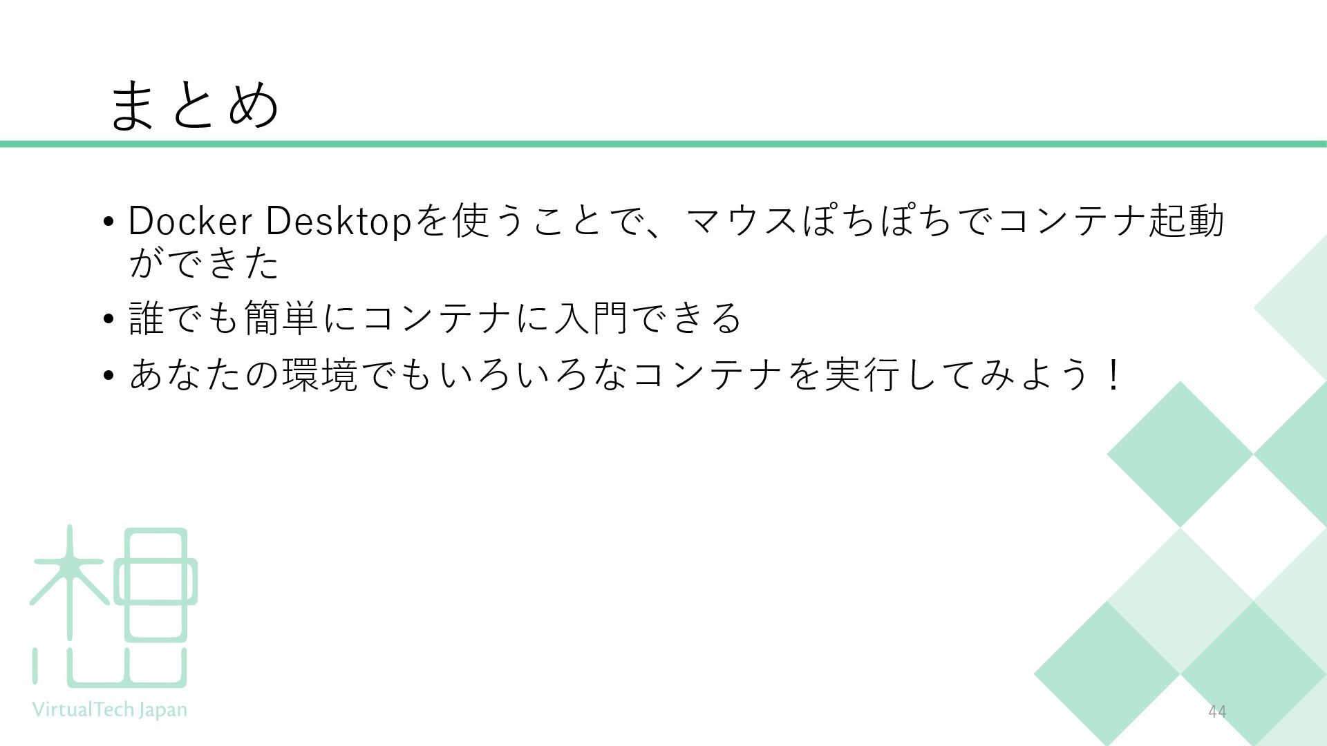 Dockerに興味はあるものの、少しハードルが高そうに感じている方向けの入門セッションです。