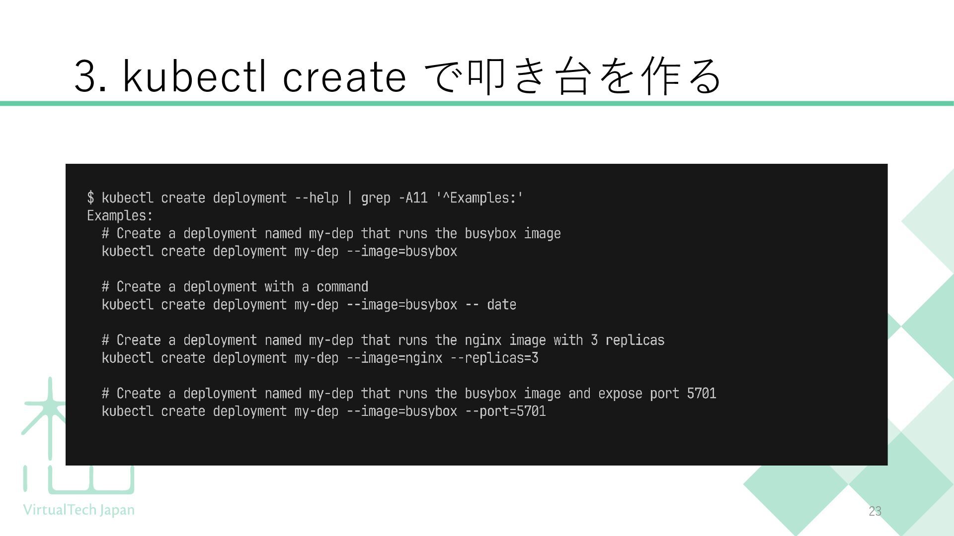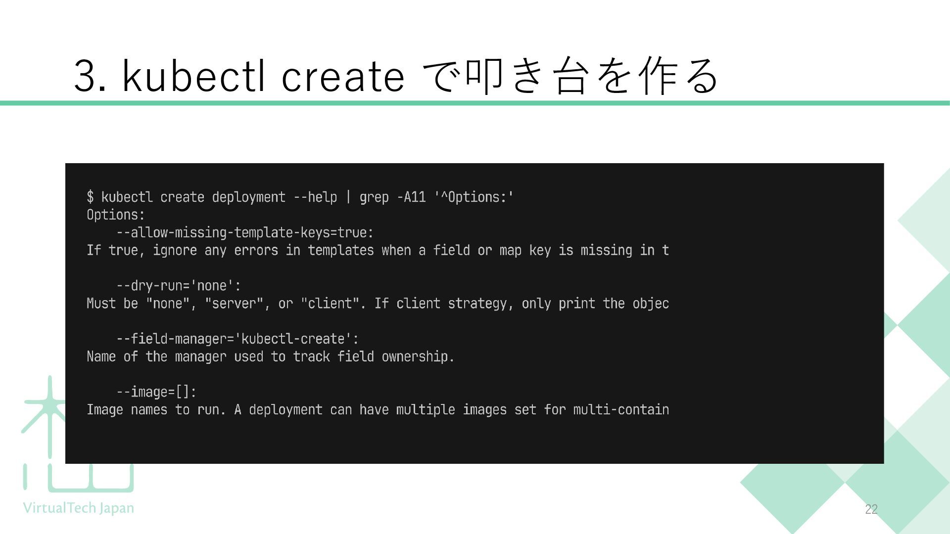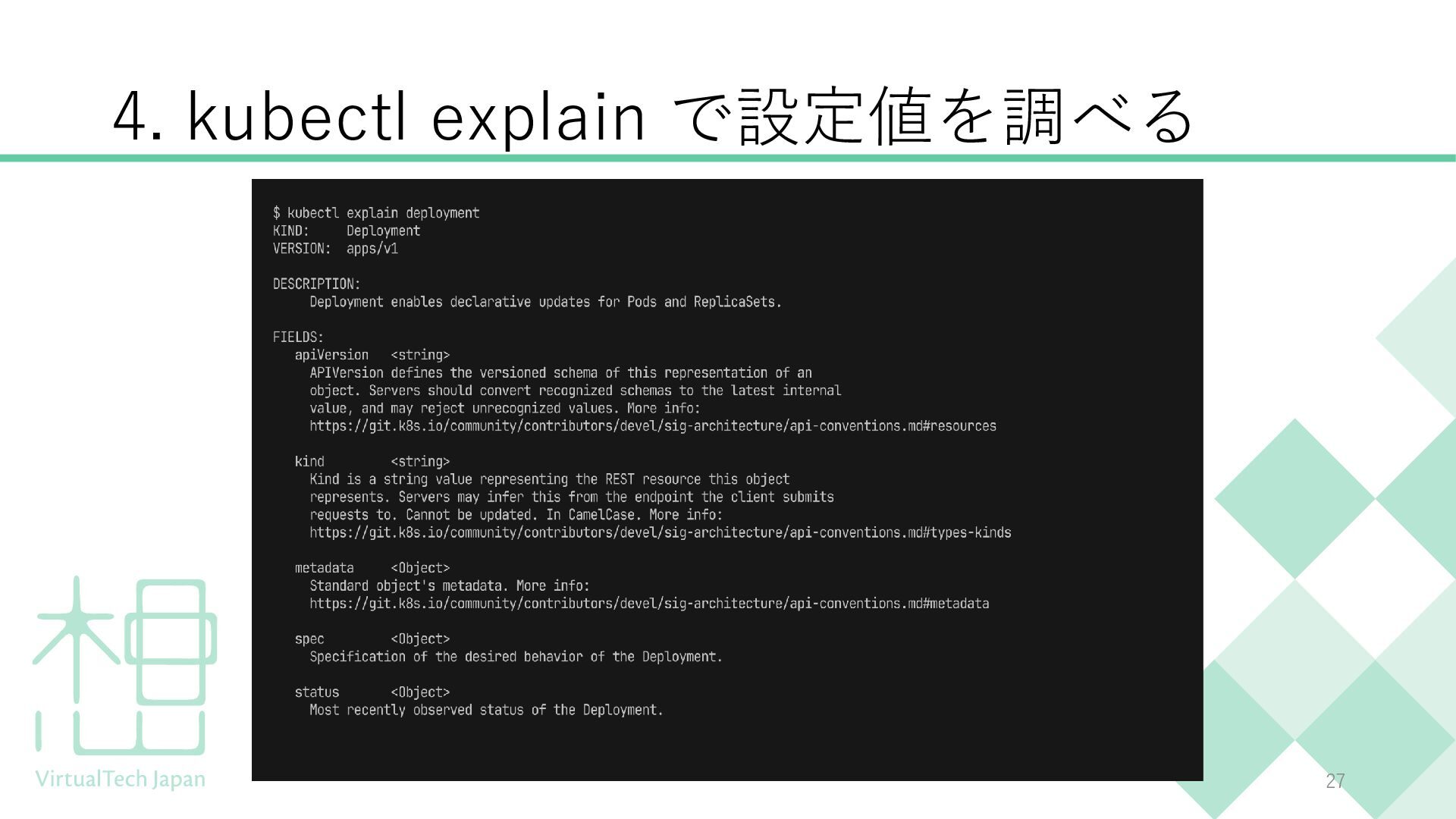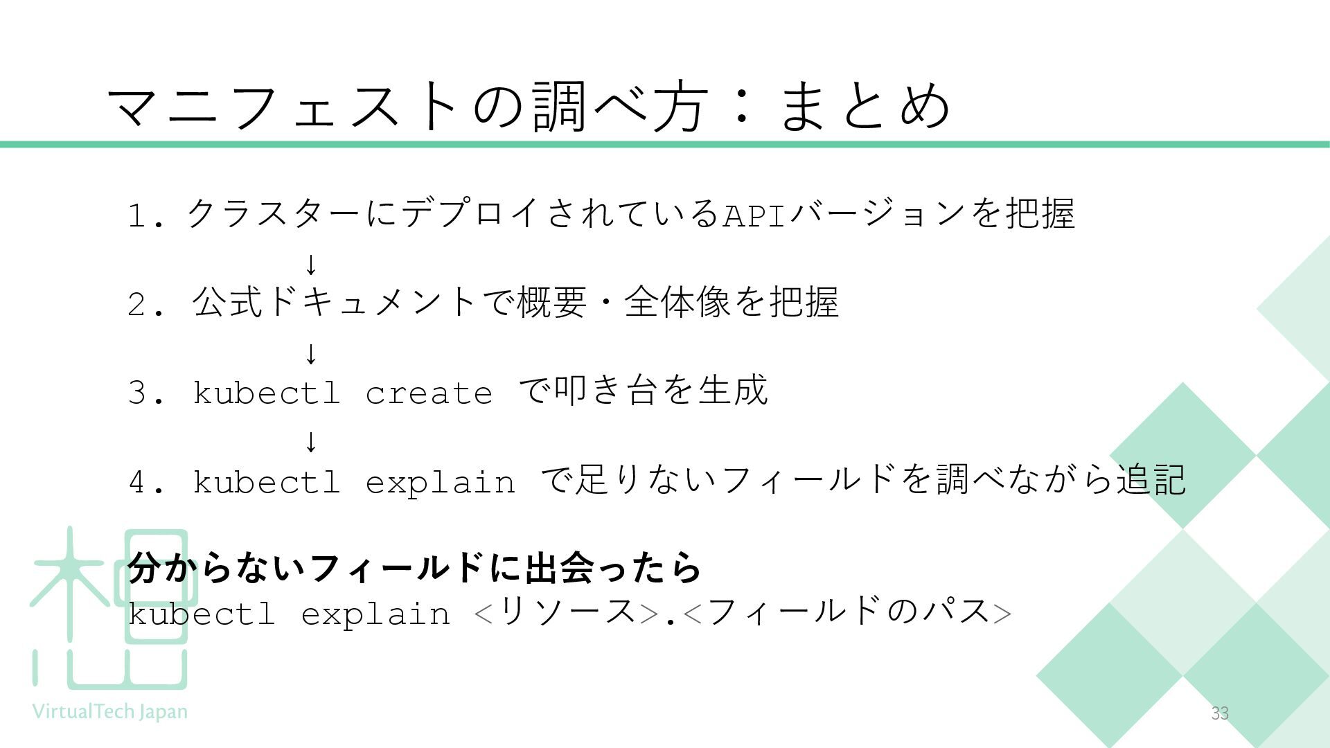 この勉強会では、kubectl explain、kubectl create、CRDの調査方法など、実務で使える「調べ方」を学びます。
