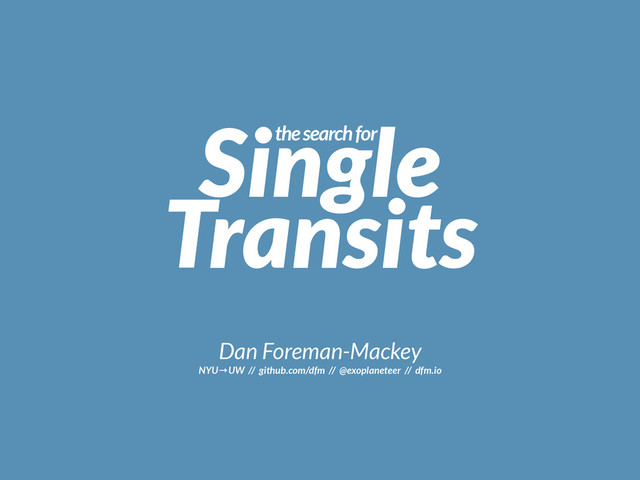 Single the search for Transits Dan Foreman-Mackey NYU→UW // github.com/dfm