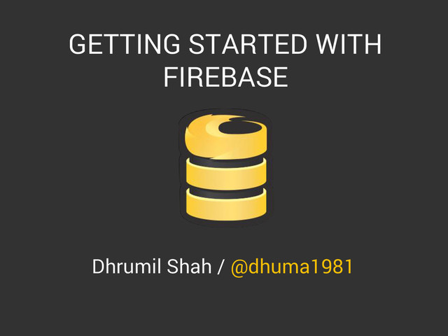 GETTING STARTED WITH FIREBASE Dhrumil Shah / @dhuma1981