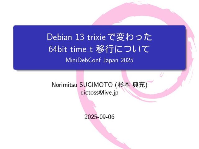 mytime{ int a; /* 4 byte */ time_t t; /* 4-8 byte */ int b; /* 4 byte */ }; int main(int argc, char *argv[]){ printf("sizeof(int) = %lu\n", sizeof(int)); printf("sizeof(long) = %lu\n", sizeof(long)); printf("sizeof(time_t) = %lu\n", sizeof(time_t)); printf("sizeof(struct mytime) = %lu\n", sizeof(struct mytime)); return 0; } $ make gcc -Wall -g -c src/time64.c -o src/time64.o gcc -Wall -g -o a.out src/time64.o