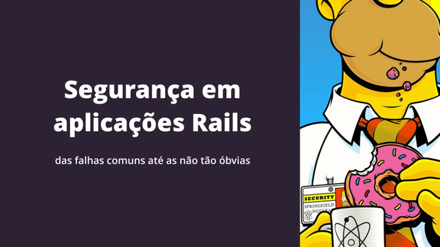 2011 2012 2013 2014 2015 2016 8 2 12 18 10 12 1 4 2 2 2 Vulnerabilidades Fonte: https://www.cvedetails.com/product/22568/Rubyonrails-Ruby-On-Rails.html?vendor_id=12043 * CVE: Common Vulnerabilities and Exposures * CVEs do Rails