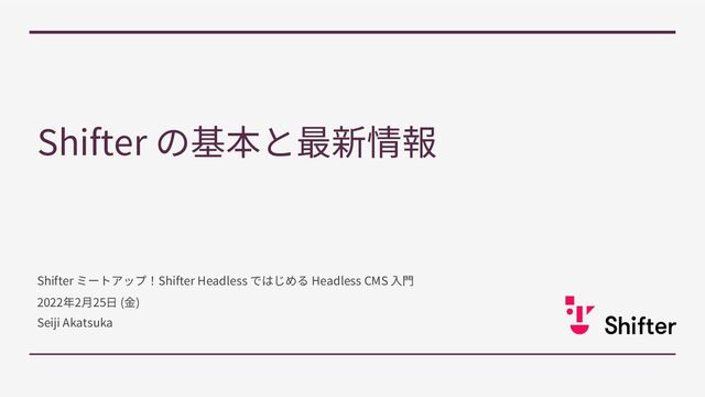[2/25 開催] Shifter ミートアップ!Shifter Headless ではじめる Headless CMS 入門 オープニングセッション https://eventregist.com/e/9c0ZtjzIfRXd