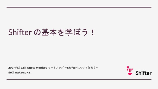 Shifter の基本を学ぼう! 2021年1月22日 Snow Monkey ミートアップ 〜Shifter について知ろう〜 Seiji Aakatsuka
