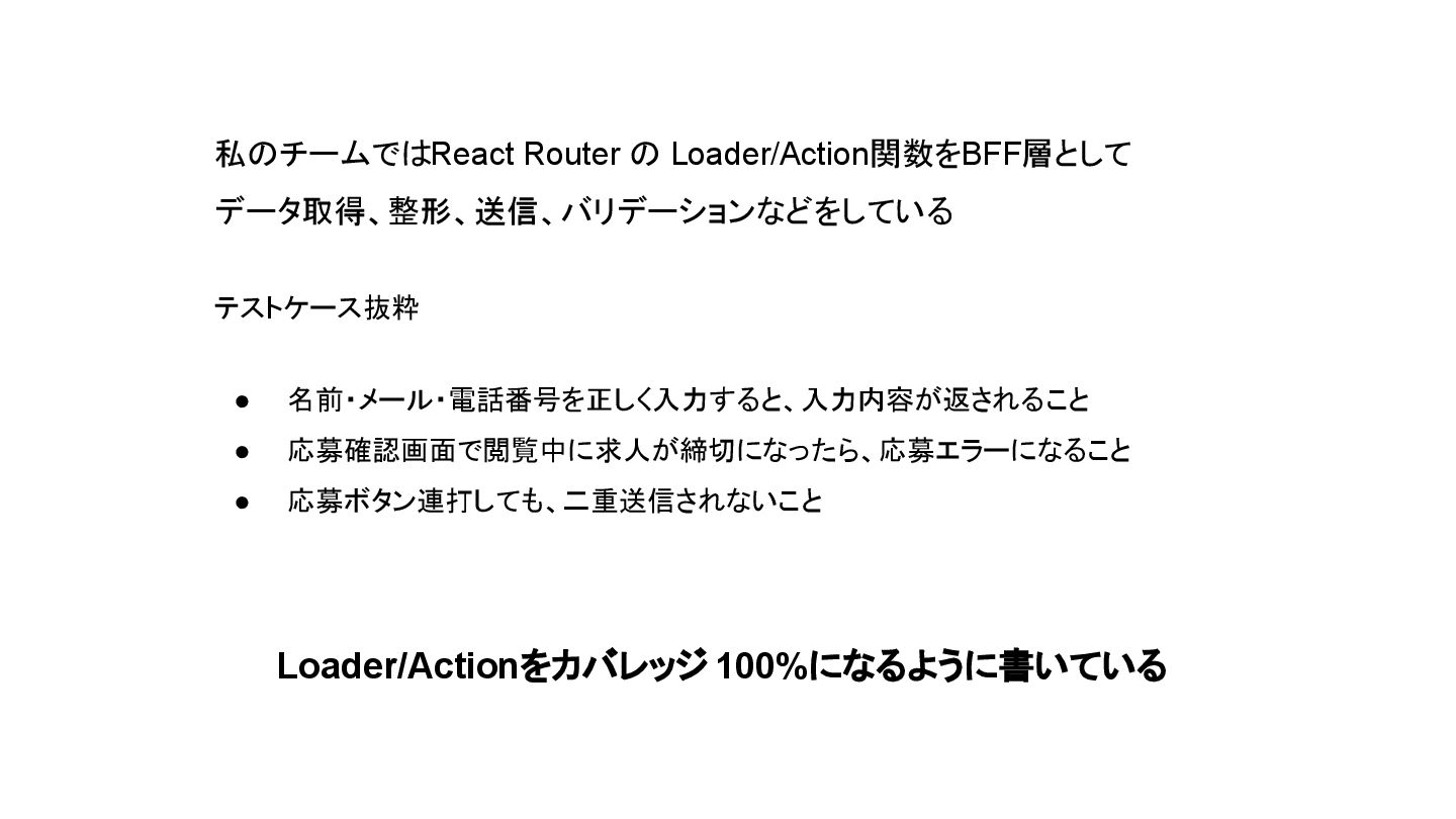 7. it('応募ボタンを押すと確認画面に進むこと ', () => { ... }); ✅ Good ❌