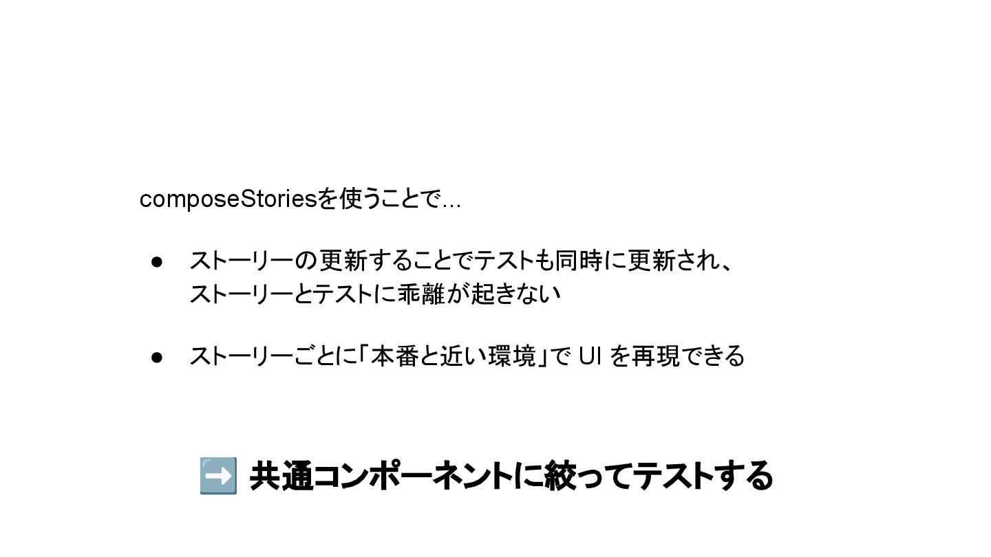 5. 📚 composeStories・・・ Storybookのストーリーをテスト環境で利用できる仕組み const meta: Meta<typeof Button> = { title: