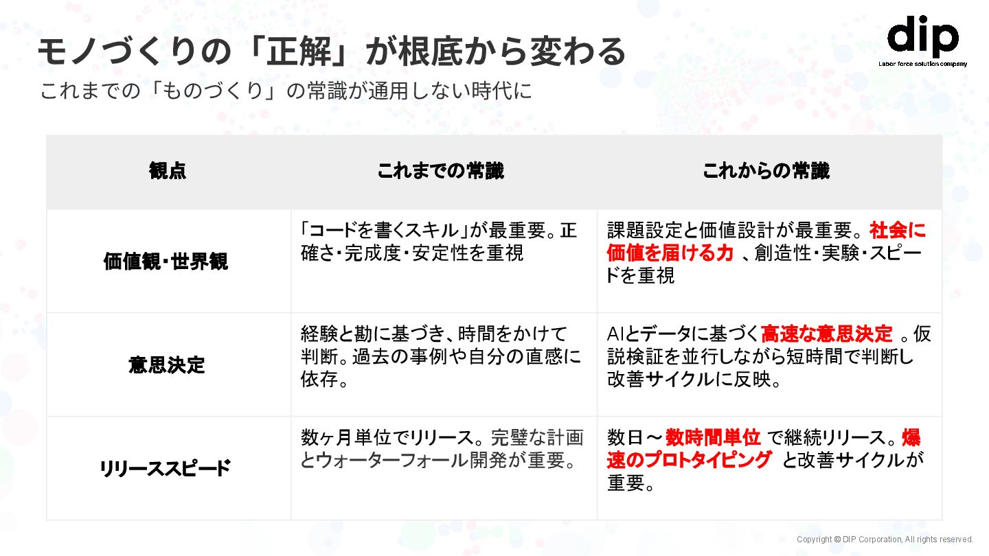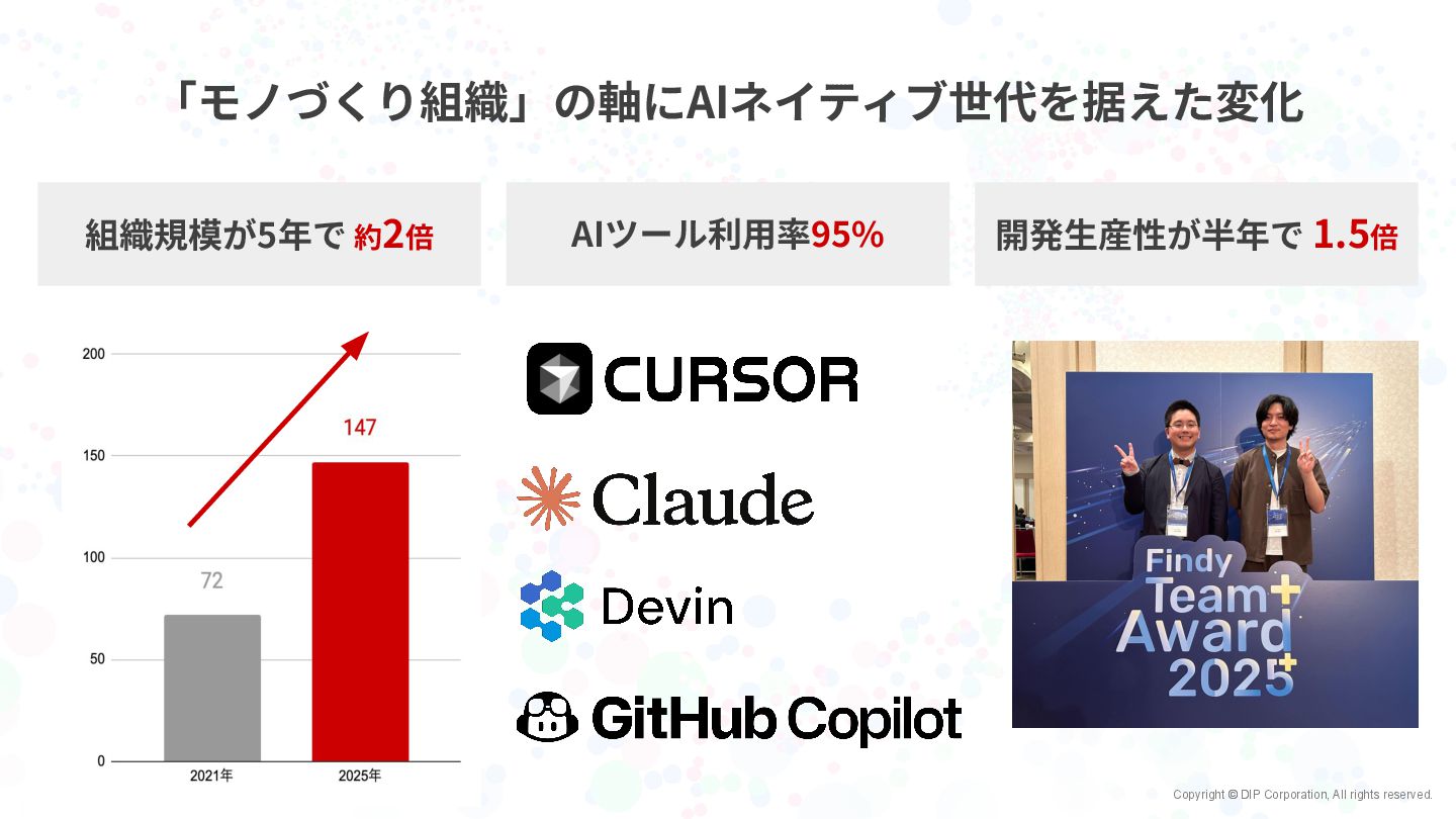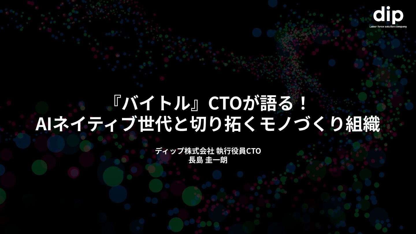 AI駆動開発が当たり前となった2025年。AIネイティブ世代を軸にプロダクト開発を進める『バイトル』CTOが下した意思決定と譲れない価値観。その決断の裏側で挑戦を重ねる若手エンジニアの成長を生々しくお伝えします。AI時代に求められる「決断」と「挑戦」のヒントに触れられる内容です。