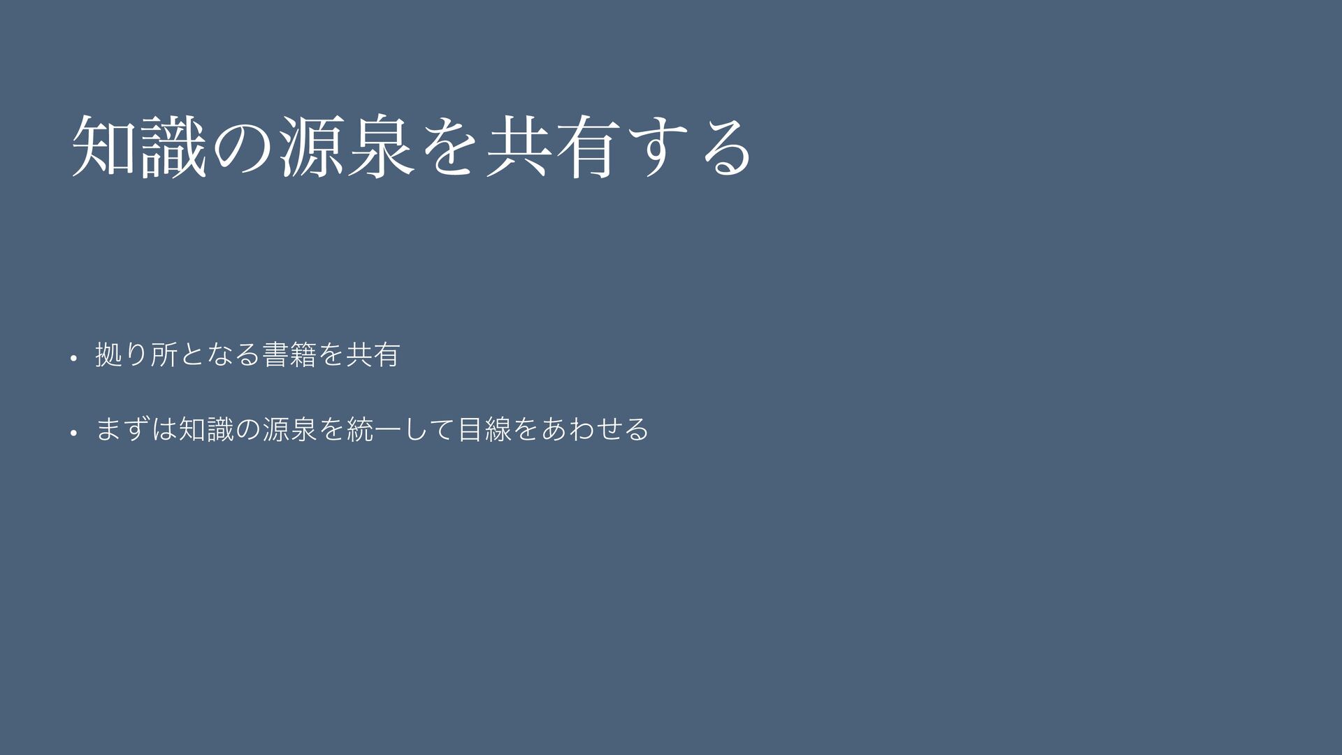ࣝͷݯઘΛڞ༗͢Δ • ڌΓॴͱͳΔॻ੶Λڞ༗ • ·ͣࣝͷݯઘΛ౷Ұͯ͠ઢΛ͋ΘͤΔ