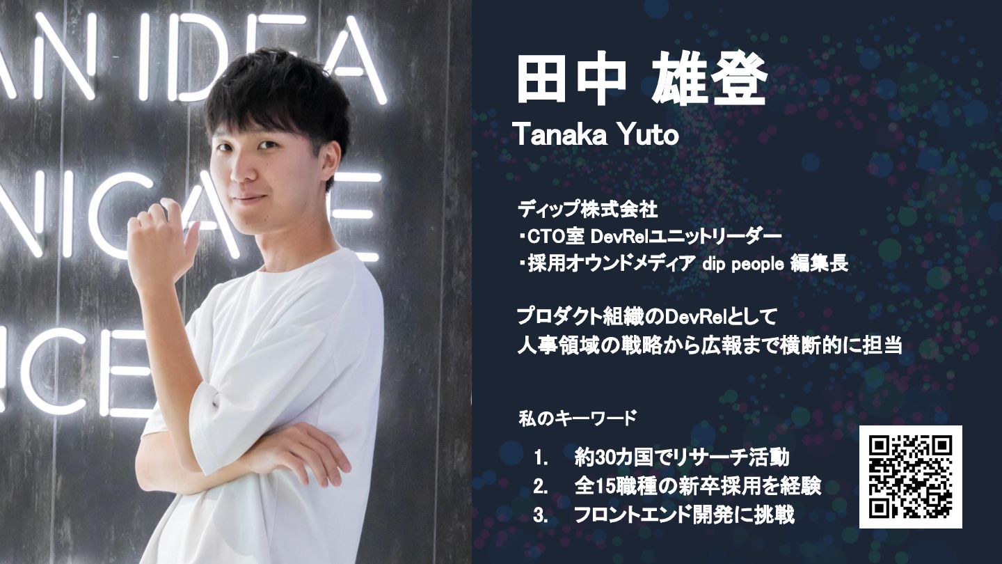 田中 雄登 Tanaka Yuto ディップ株式会社 ・CTO室 DevRelユニットリーダー