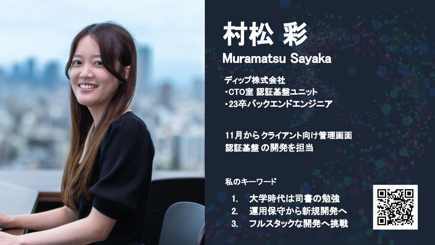 村松 彩 Muramatsu Sayaka ディップ株式会社 ・CTO室 認証基盤ユニット