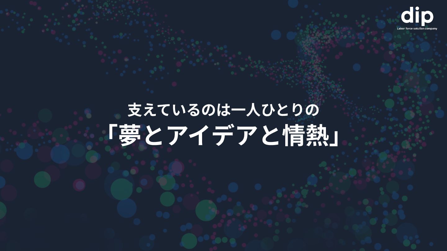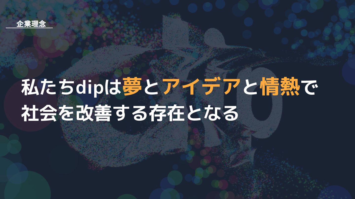 Copyright © DIP Corporation, All rights reserved. 企業理念 私たちdipは夢とアイデアと情熱で 社会を改善する存在となる