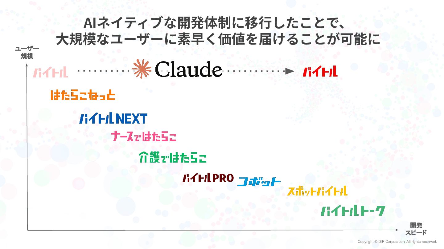 Copyright © DIP Corporation, All rights reserved. AIネイティブな開発体制に移⾏したことで、 ⼤規模なユーザーに素早く価値を届けることが可能に ユーザー