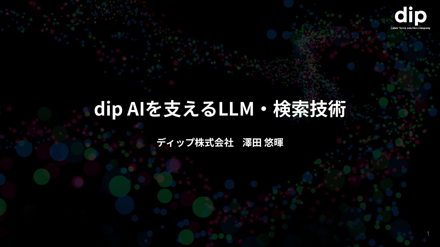 dip AIを⽀えるLLM‧検索技術 ディップ株式会社 澤⽥ 悠暉 1