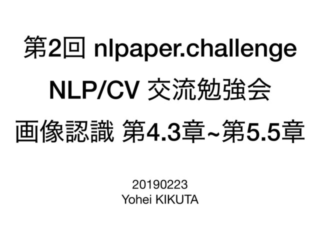 ୈ2ճ nlpaper.challenge NLP/CV ަྲྀษڧձ ը૾ೝࣝ ୈ4.3ষ~ୈ5.5ষ 20190223 Yohei KIKUTA
