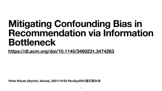 we have H (z| ,r) = H (z| ), where H(·|·) denotes the conditional entropy [15, 26]. Combining I (z;r) = I (z; ) H ( |r) + H ( |z,r) . because the degree of dependence between them is determined by the strength of the bias in the feedback data, and blindly optimizing it may lead to bad results. Inspired by information theory, we can then derive the required objective function to be minimized from the above analysis, because the degree of dependence between them is determined by he strength of the bias in the feedback data, and blindly optimizing t may lead to bad results. Inspired by information theory, we can then derive the required objective function from the above analysis, LDIB := min I (z;x) | {z } 1 I (z; ) | {z } 2 + I (z;r) | {z } 3 I (r; ) | {z } 4 , (3) where term 1 is a compression term that describes the mutual nformation between the variables x and the unbiased embedding ; term 2 is an accuracy term that describes the performance of he unbiased embedding z; term 3 is a de-confounder penalty erm, which describes the dependency degree between the biased mbedding r and the unbiased embedding z; and term 4 is similar o term 2 , which is used for the potential gain from the biased mbedding r. Note that , and are the weight parameters. Since erms 1 and 2 in Eq.(3) are similar to a standard information bottleneck, we call the proposed method a debiased information bottleneck, or DIB for short. By optimizing LDIB, we expect to get he desired biased and unbiased components, and can then prune he confounding bias. 5 A TRACTABLE OPTIMIZATION (3) where term 1 is a compression term that describes the mutual information between the variables x and the unbiased embedding z; term 2 is an accuracy term that describes the performance of the unbiased embedding z; term 3 is a de-confounder penalty term, which describes the dependency degree between the biased embedding r and the unbiased embedding z; and term 4 is similar to term 2 , which is used for the potential gain from the biased embedding r. Note that , and are the weight parameters. Since terms 1 and 2 in Eq.(3) are similar to a standard information bottleneck, we call the proposed method a debiased information bottleneck, or DIB for short. By optimizing LDIB, we expect to get the desired biased and unbiased components, and can then prune the confounding bias. Based on the chain rule of mutual information, we ha ing equation about the de-confounder penalty term I (z;r) = I (z; ) I (z; |r) + I (z;r | ) . We further inspect the term I (z;r| ) in Eq.(4). Sinc tion of z depends solely on the variables x, and x is we have H (z| ,r) = H (z| ), where H(·|·) denotes th entropy [15, 26]. Combining the properties of mutua we have, I (z;r | ) = H (z| ) H (z| ,r) = H (z| ) H (z By substituting Eq.(5) into Eq.(4), we have, I (z;r) = I (z; ) I (z; |r) . Since the term I (z; |r) in Eq.(6) is still dicult to be use the form of conditional entropy to further simpl I (z;r) = I (z; ) H ( |r) + H ( |z,r) . INXzy x y zxz YIX RHS and term ICYMI Iftiz I frizz RHS 3rd term Ift 2 1127 ILL p I 242 HZIL HHH 141272 H2 12 0 ZAKFitt It H Huston I 4 112,1 ICZL Iz214 I Z L Halt HLIZt z 7112127 41414 HAI zig 2h2 t 4 Z E NFHILEITHEEIFEE D TAEK I HT HH HAIL Z HEAD I TEKLE Lp I MAN t7112121 21412171 21 11214 2141212.4 2711217 Ellman's 1181741421 18441214 2141212,7 Exe I p er Ips 1 2 HUH 18441442112174 PIMM oleneck RecSys ’21, September 27-October 1, 2021, Amsterdam, Netherlands he objective |z,r)] I (r; ) ,r) I (r; ) . (8) is related to e describe a tion using a relationship ) divergence, ows, This inequality also applies to the mutual information I (r; ) in Eq.(8). Combining Eq.(11) and Eq.(12), we can rewrite Eq.(8) as follows, LDIB = I (z;x) (1 ) I (z; ) H ( |r) + H ( |z,r) I (r; ) kµ(x)k2 2 + (1 )H( |z) ( )H( |r) + H( |z,r). (13) Finally, we get a tractable solution for LDIB, ˆ LDIB = (1 )H( |z) | {z } (a) ( )H( |r) | {z } (b) + H( |z,r) | {z } (c) + kµ(x)k2 2 | {z } (d) , (14) where 0 < < < 1. Let ˆr , ˆz, and ˆz,c be the predicted labels generated by the biased component r, the unbiased component z, and the biased embedding vector [z,r] as shown in Figure 2(a), 14 z given Ͱ y ʹΔ ใখ͍ͨ͘͞͠ 0 < α < γ < 1 r given Ͱ y ʹΔ ใଟͯ͘Α͍ z,r given Ͱ y ʹΔ ใখ͍ͨ͘͞͠ z ѹॖ͍ͨ͠