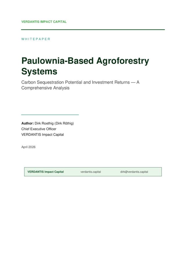 P E R Paulownia-Based Agroforestry Systems Carbon Sequestration Potential and Investment Returns — A Comprehensive Analysis Author: Dirk Roethig (Dirk Röthig) Chief Executive Officer VERDANTIS Impact Capital April 2026 VERDANTIS Impact Capital verdantis.capital [email protected]