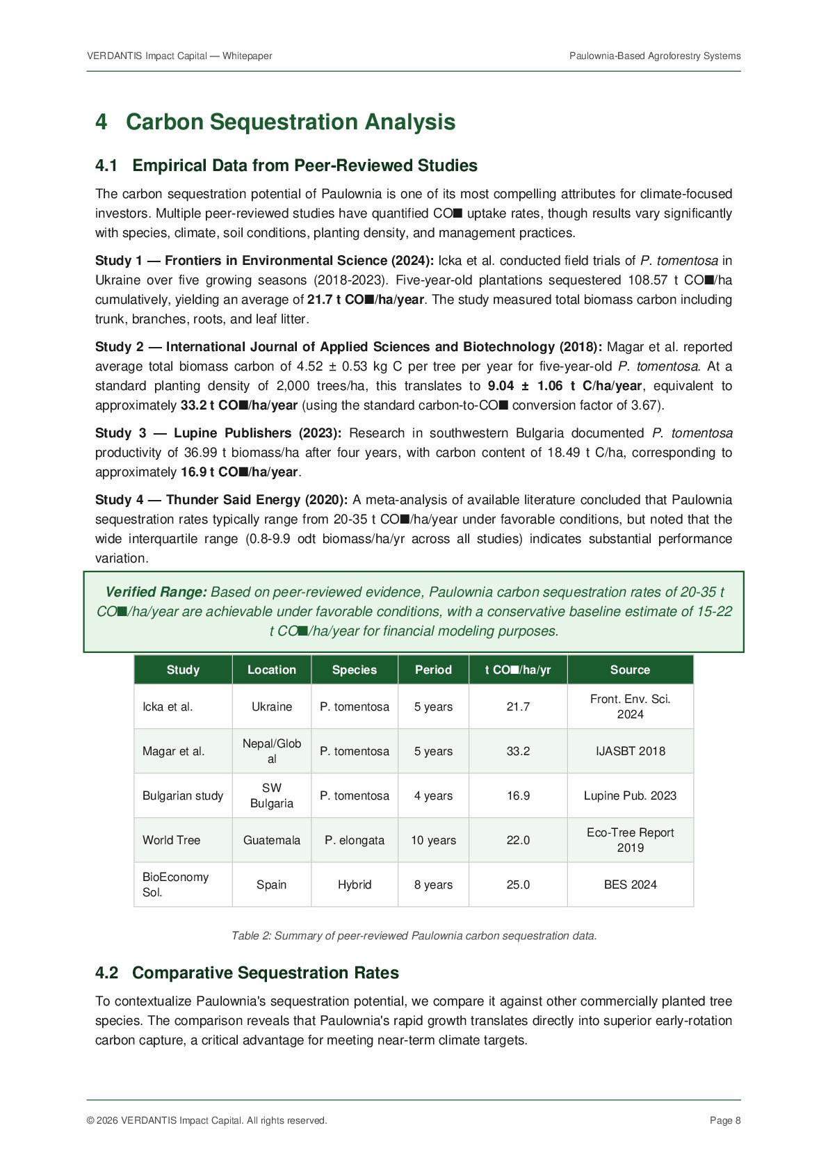 4. VERDANTIS Impact Capital — Whitepaper Paulownia-Based Agroforestry Systems © 2026