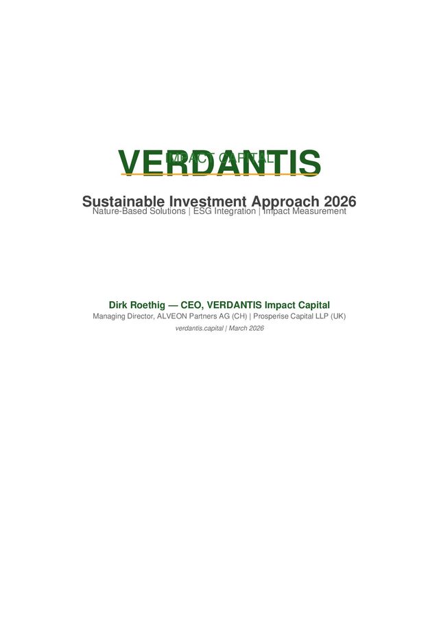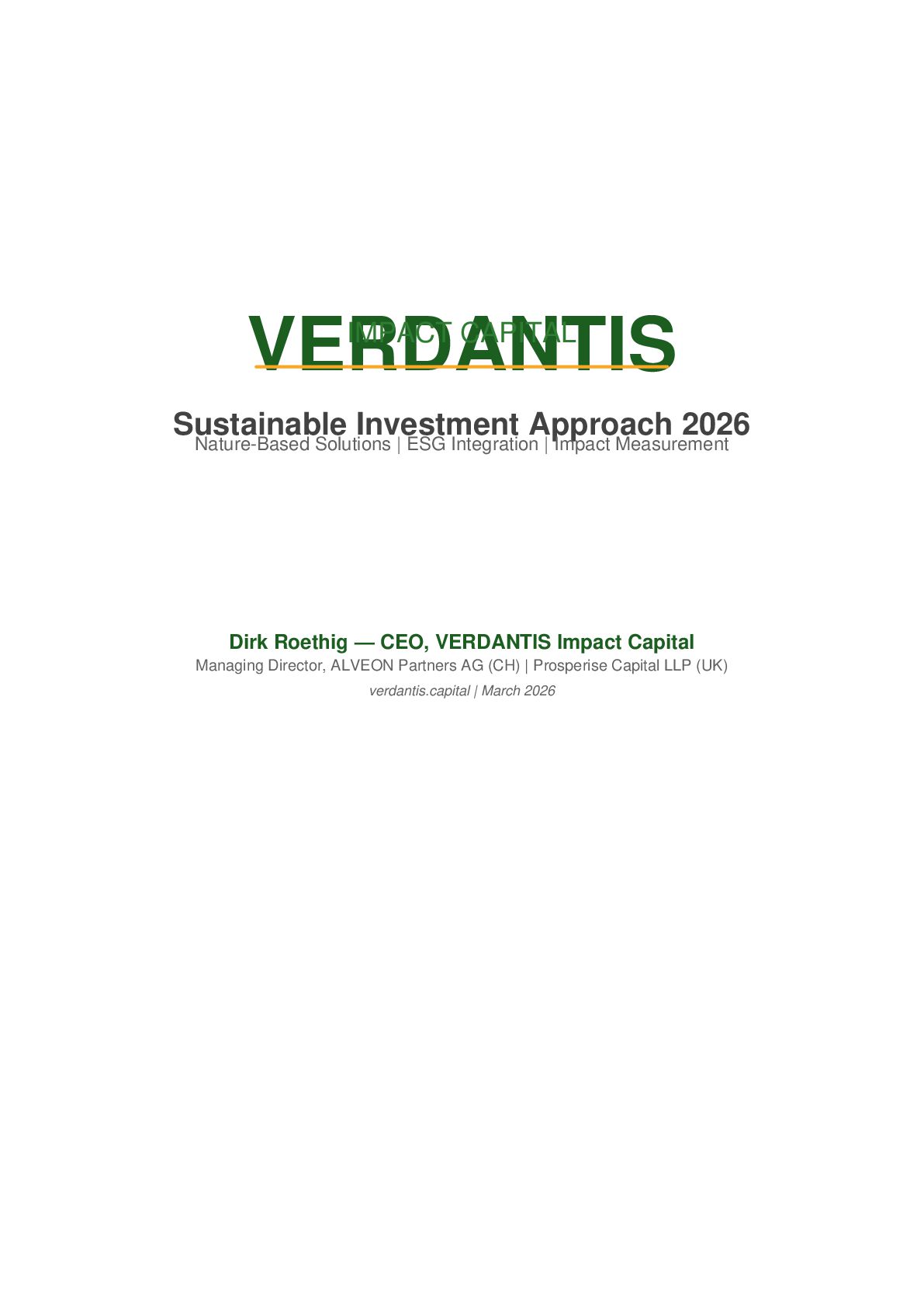 ESG Integration | Impact Measurement Dirk Roethig — CEO, VERDANTIS Impact Capital Managing Director, ALVEON Partners AG (CH) | Prosperise Capital LLP (UK) verdantis.capital | March 2026