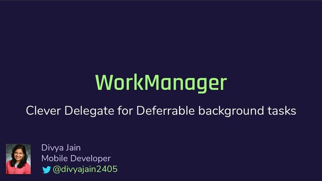 human readable & developer specified Name WorkManager.enqueueUniqueWork(String, ExistingWorkPolicy, OneTimeWorkRequest) WorkManager.enqueueUniquePeriodicWork(String, ExistingPeriodicWorkPolicy, PeriodicWorkRequest) ExistingWorkPolicy == Resolution Policy REPLACE/KEEP/APPEND