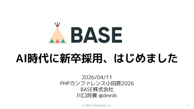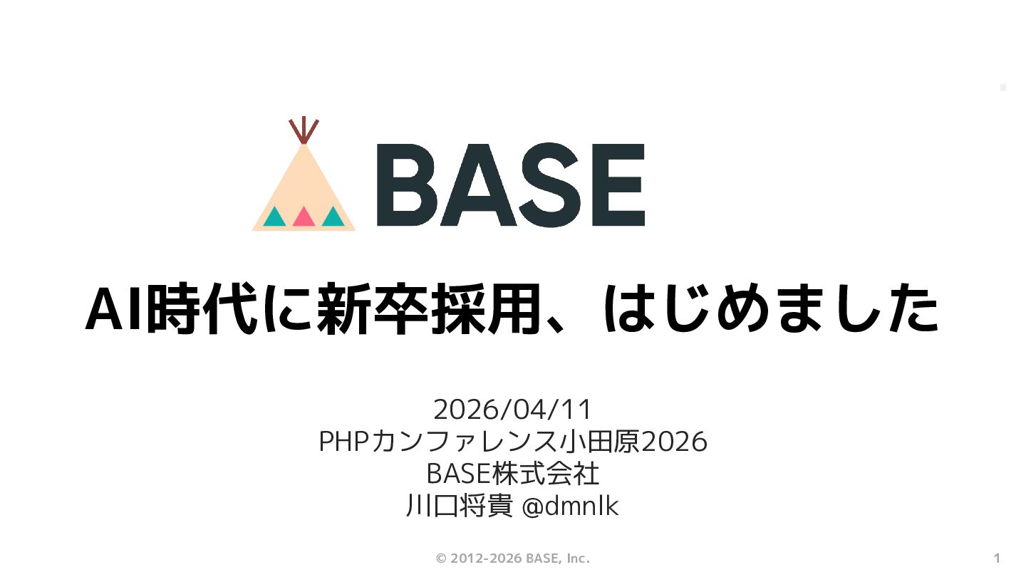 1 © 2012-2026 BASE, Inc. 2026/04/11 PHPカンファレンス小田原2026 BASE株式会社 川口将貴 @dmnlk
