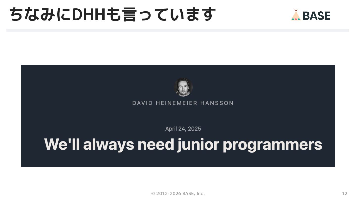 12 © 2012-2026 BASE, Inc. ちなみにDHHも言っています
