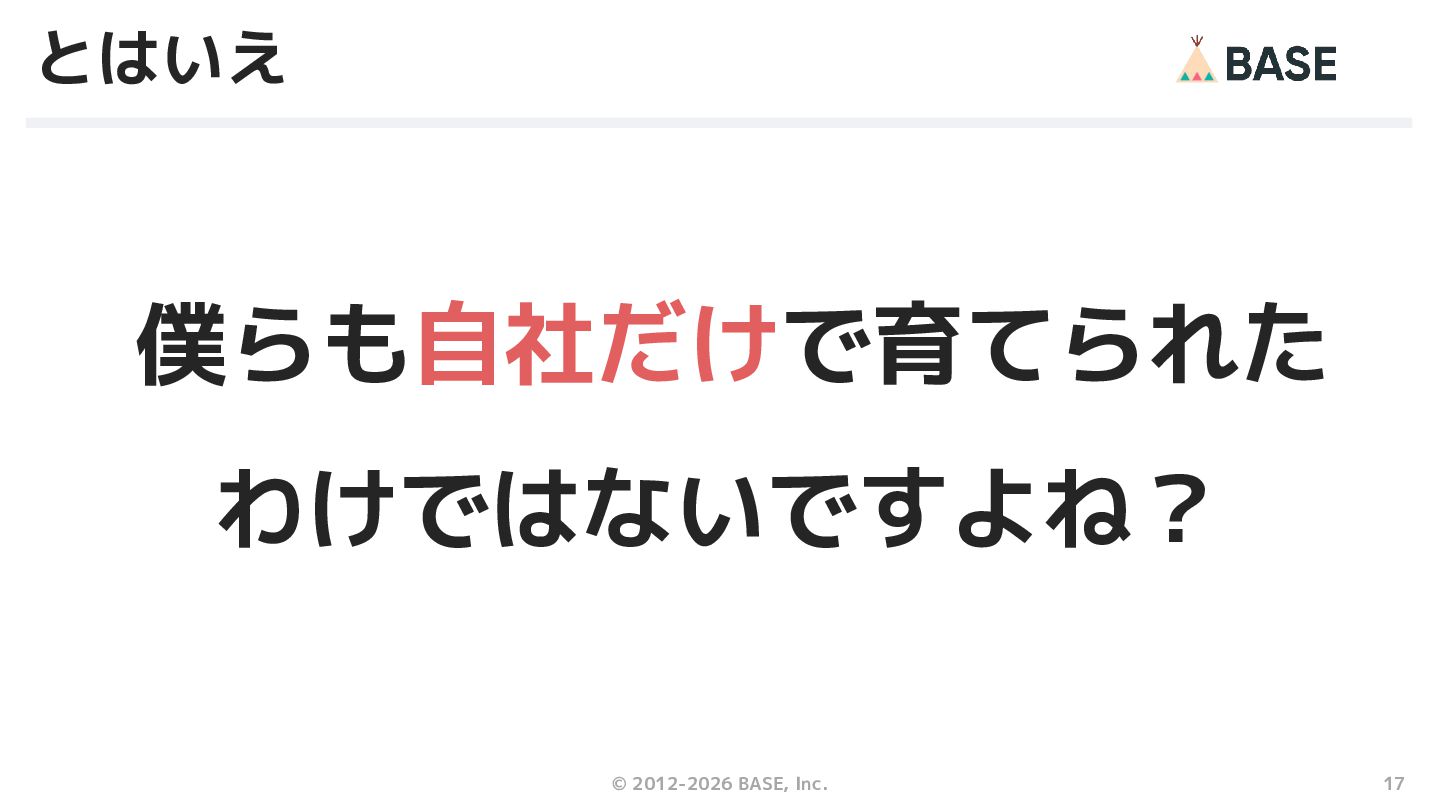 17 © 2012-2026 BASE, Inc. とはいえ 僕らも自社だけで育てられた わけではないですよね?