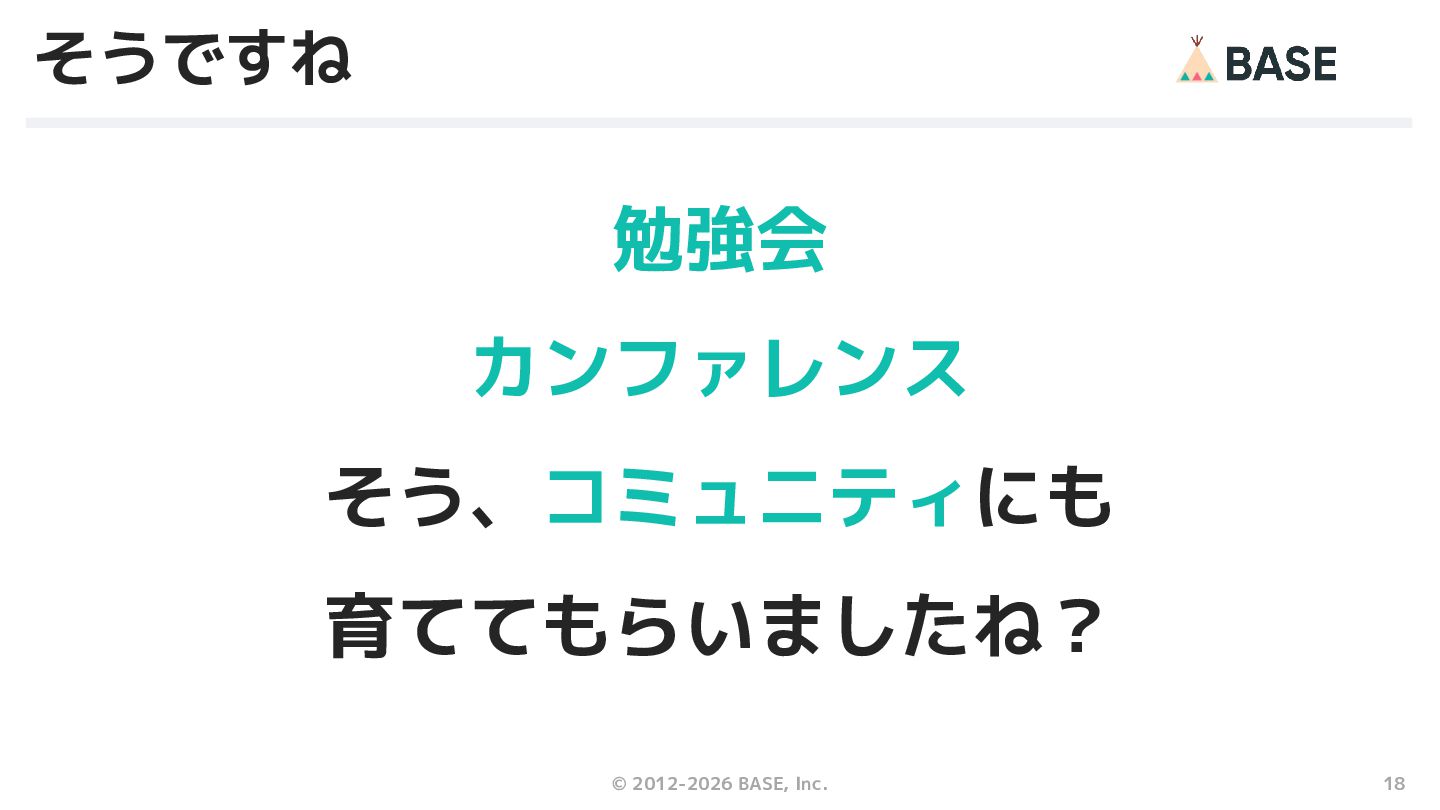 18 © 2012-2026 BASE, Inc. そうですね 勉強会 カンファレンス そう、コミュニティにも 育ててもらいましたね?