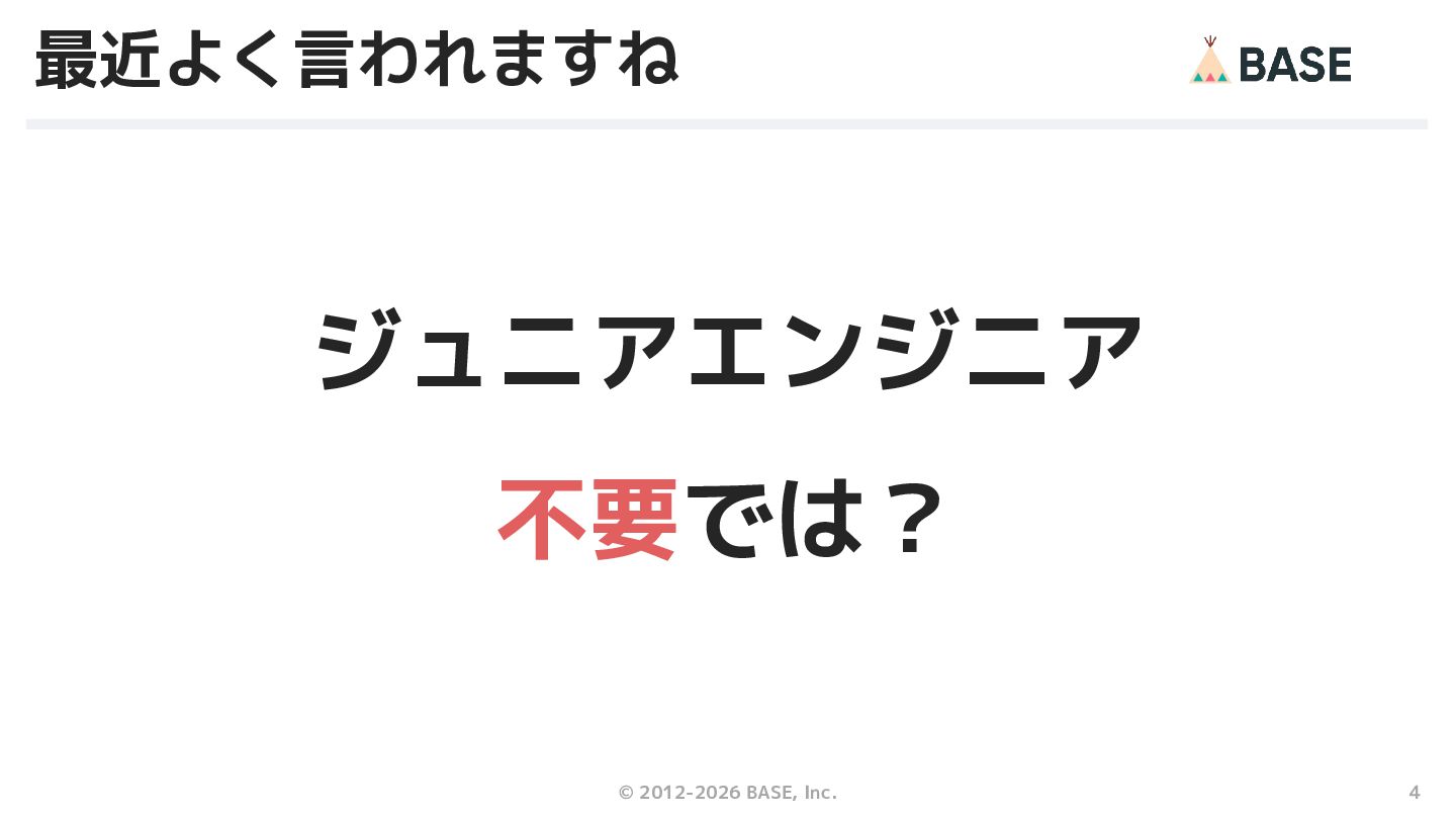4 © 2012-2026 BASE, Inc. 最近よく言われますね ジュニアエンジニア 不要では?