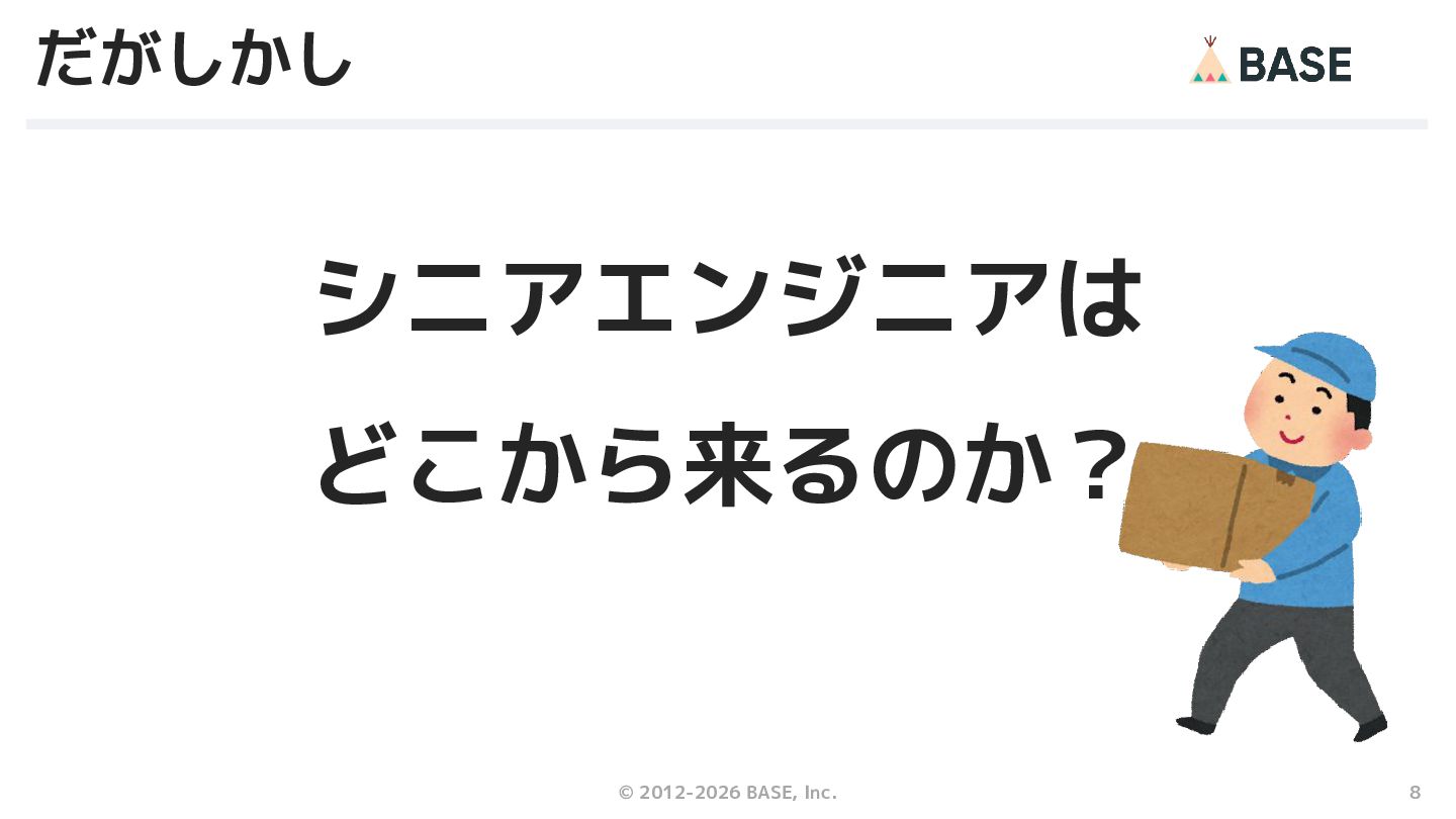 8 © 2012-2026 BASE, Inc. だがしかし シニアエンジニアは どこから来るのか?