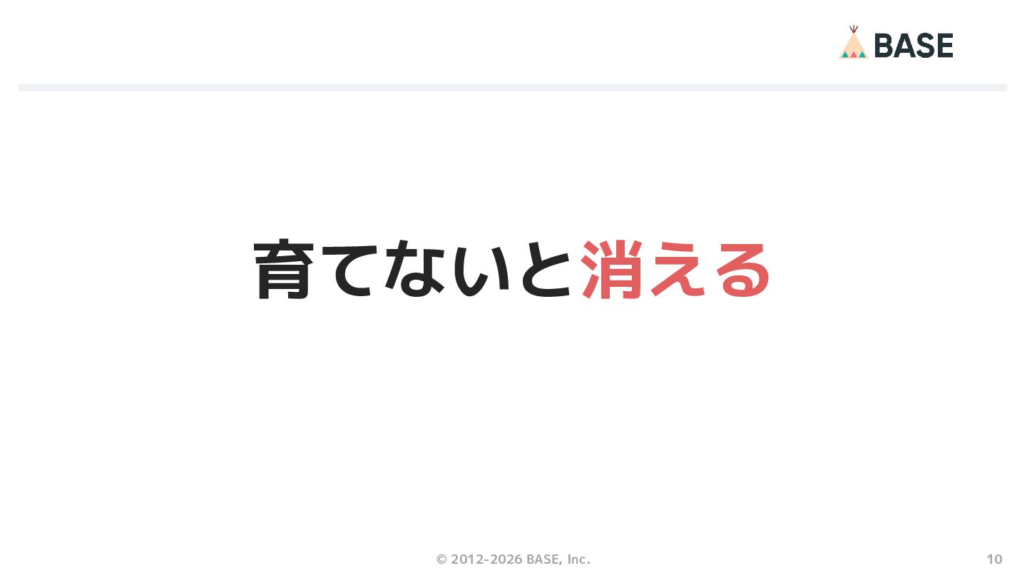 10 © 2012-2026 BASE, Inc. 育てないと消える