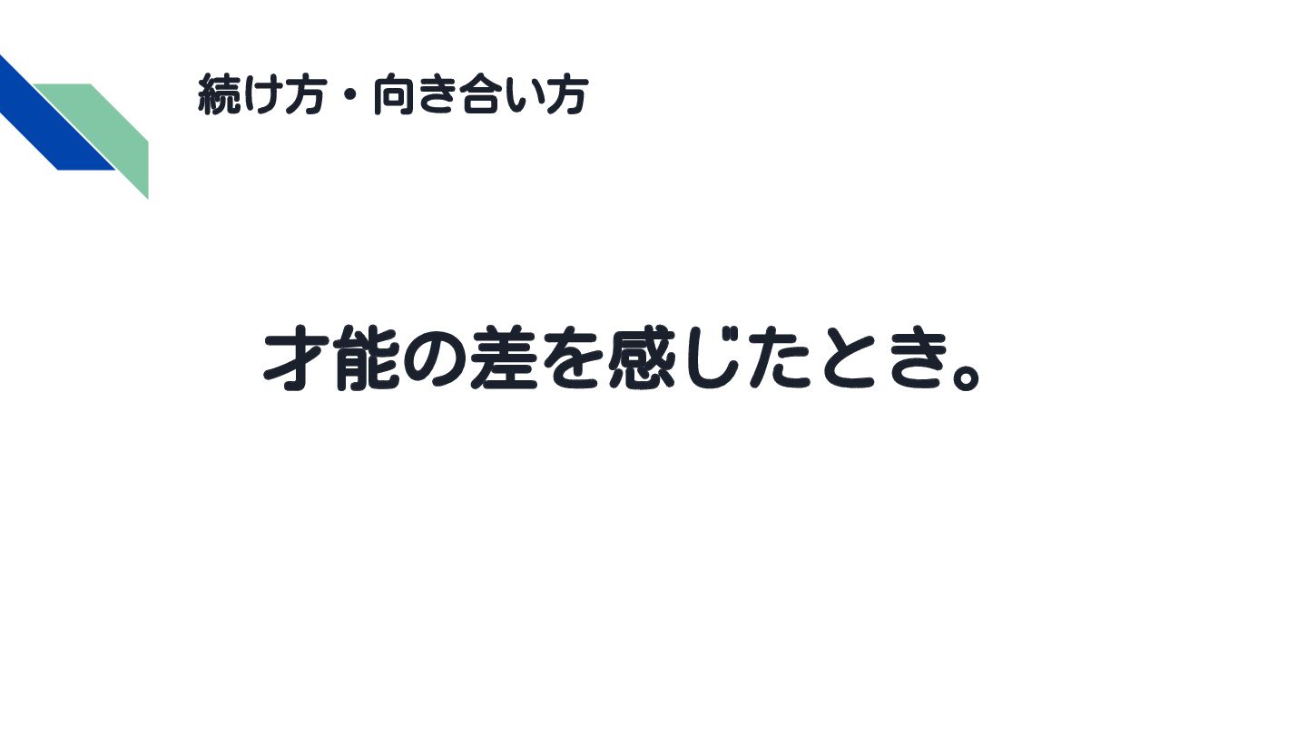 続け方・向き合い方 才能の差を感じたとき。