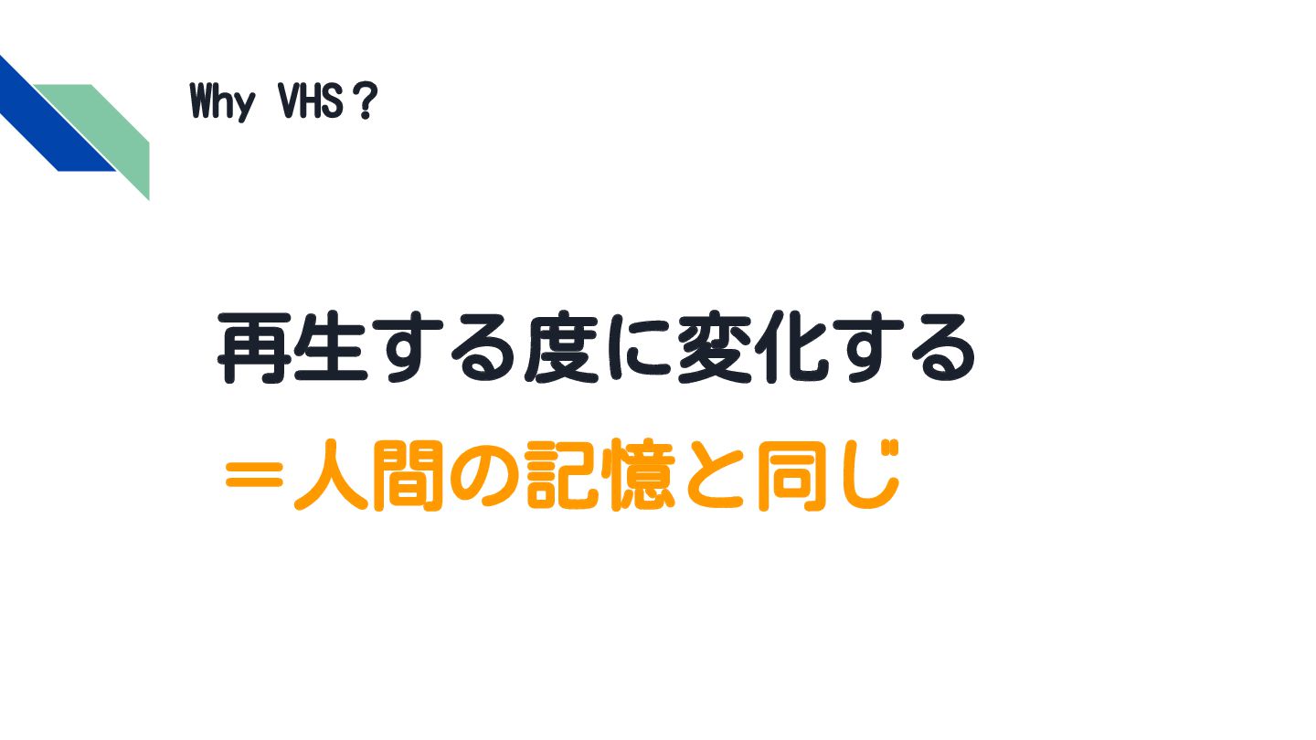 Why VHS? 再生する度に変化する =人間の記憶と同じ