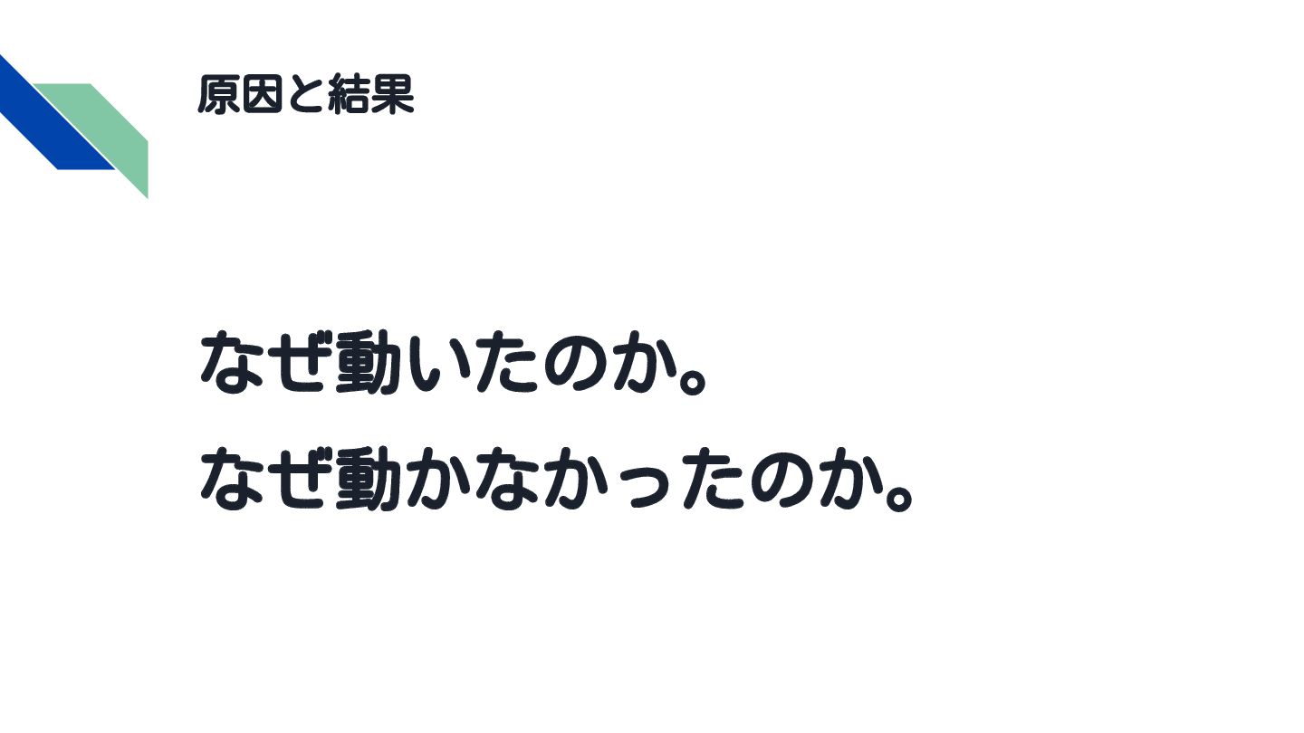原因と結果 なぜ動いたのか。 なぜ動かなかったのか。