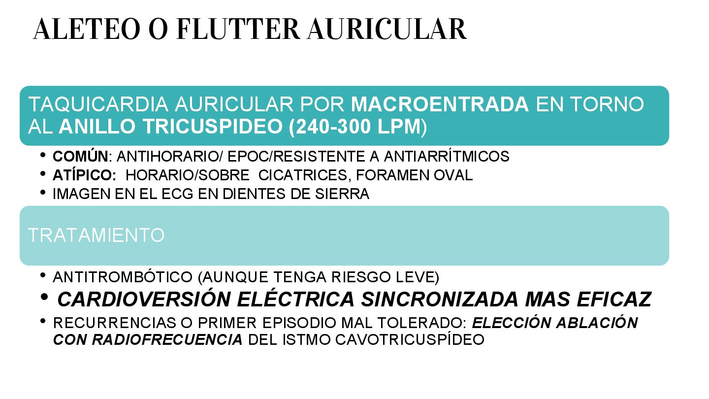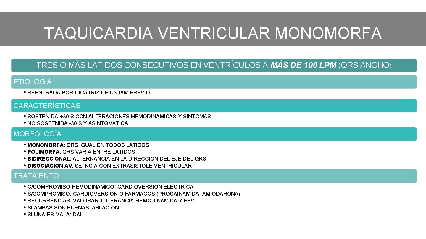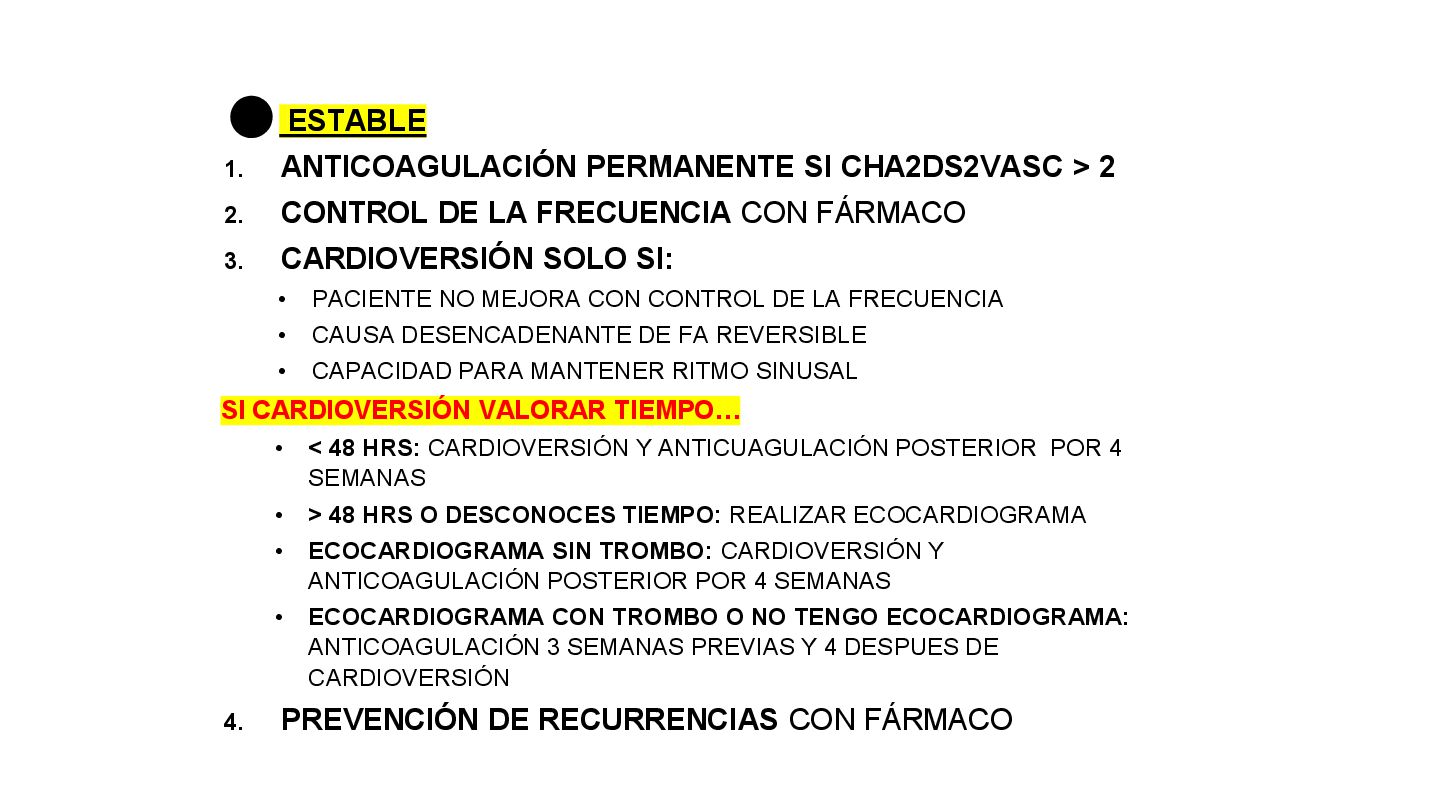 en AVR • P antes de QRS con eje entre 0 y 90 • PR 0.12 a 0.2 segundos RITMO SINUSAL > 100 LPM • POR DISPARO: ejercicio, ansiedad, fiebre,hipotension, hipertiroidismo, cafeina, cocaina CAUSA • Tratar causa responsable • B-bloqueadores si se vuelve sintomática TRATAMIENTO TAQUICARDIA SINUSAL