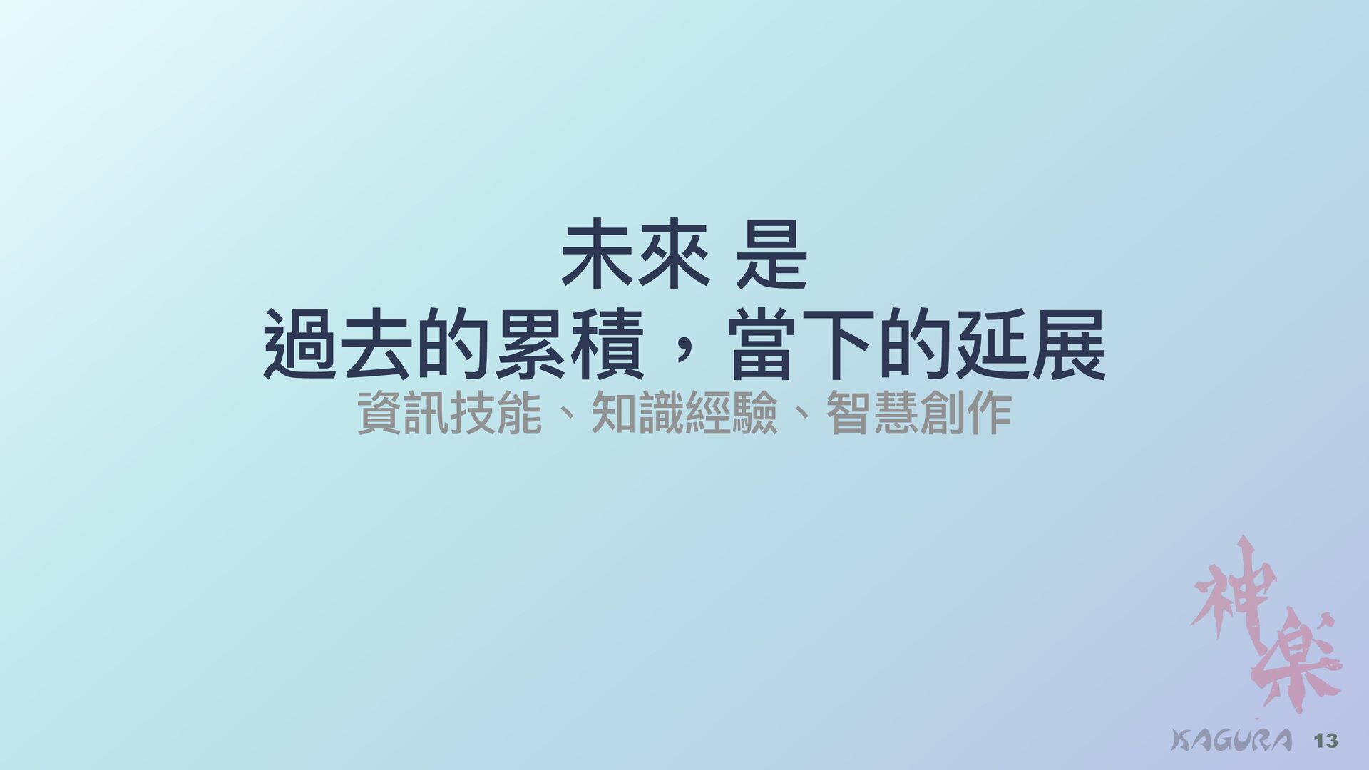 未來 是 過去的累積,當下的延展 13 資訊技能、知識經驗、智慧創作