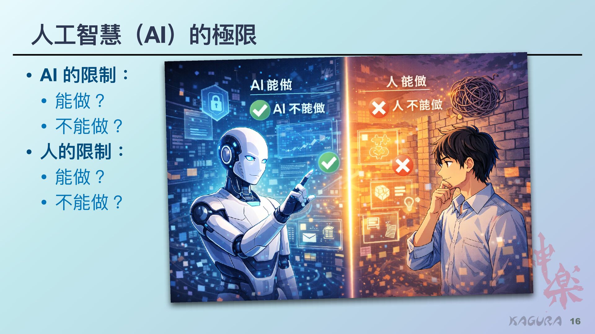 人 工 智慧(AI)的極限 • AI 的限制: • 能做? • 不能做?