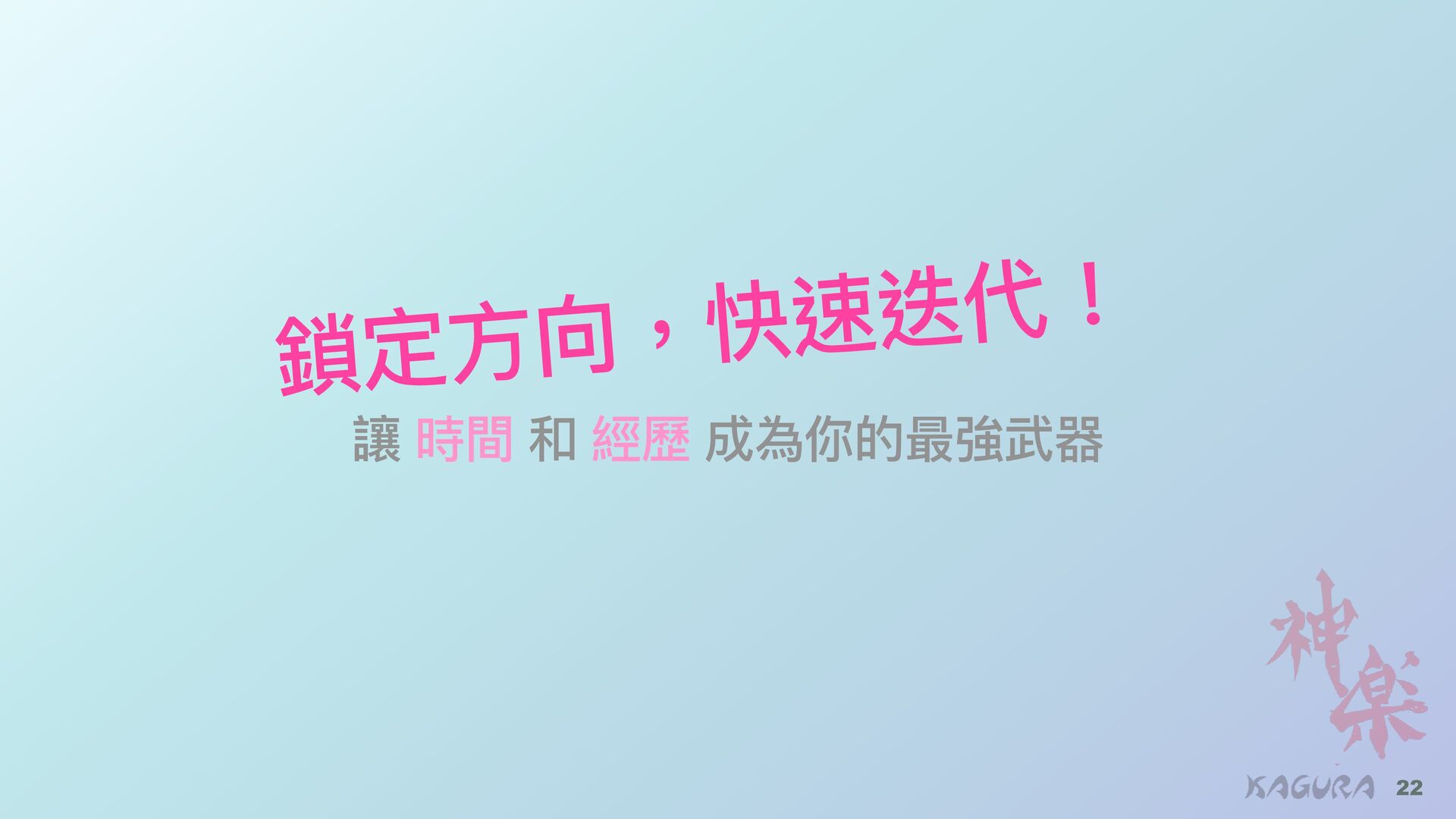 22 讓 時間 和 經歷 成為你的最強武器 鎖定 方 向,快速迭代!